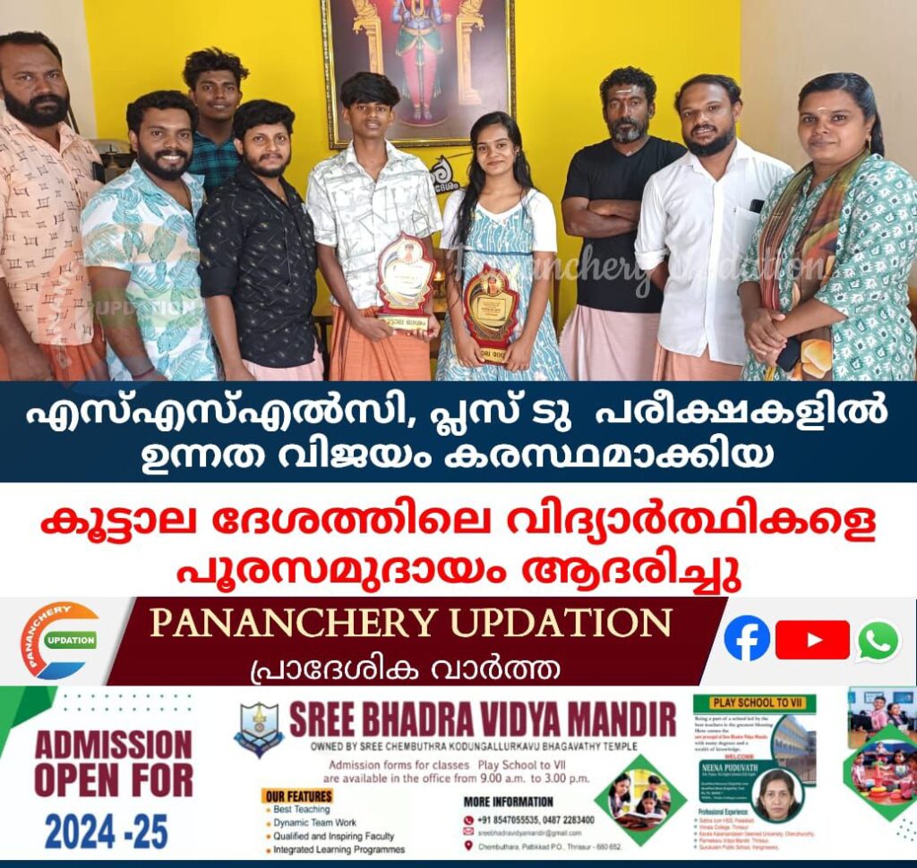 എസ്എസ്എൽസി, പ്ലസ് ടു പരീക്ഷകളിൽ ഉന്നത വിജയം കരസ്ഥമാക്കിയ കൂട്ടാല ദേശത്തിലെ വിദ്യാർത്ഥികളെ പൂരസമുദായം ആദരിച്ചു