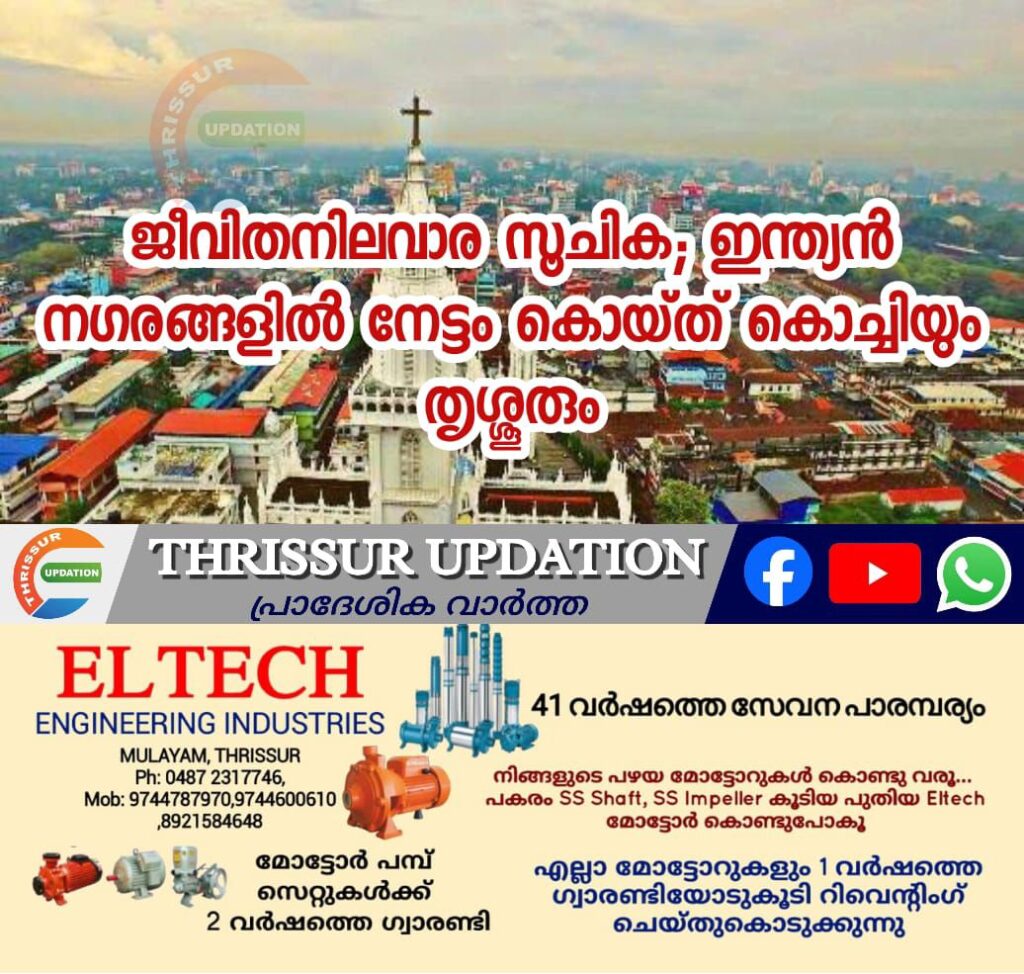 ആഗോളതലത്തിൽ മികച്ച ജീവിതനിലവാരമുള്ള നഗരങ്ങളുടെ പട്ടികയിൽ ഇന്ത്യൻ നഗരങ്ങളിൽ കൊച്ചിയും തൃശ്ശൂരും മുന്നിൽ. ഡൽഹിയെയും മുംബൈയെയും മറികടന്നാണ് കേരളീയ നഗരങ്ങൾ മുന്നിലെത്തിയത്. ഓക്സ്ഫഡ് ഇക്കണോമിക് ഗ്ലോബൽ സിറ്റീസ് ഇൻഡെക്സിലാണ് ഇൗ നേട്ടം.
