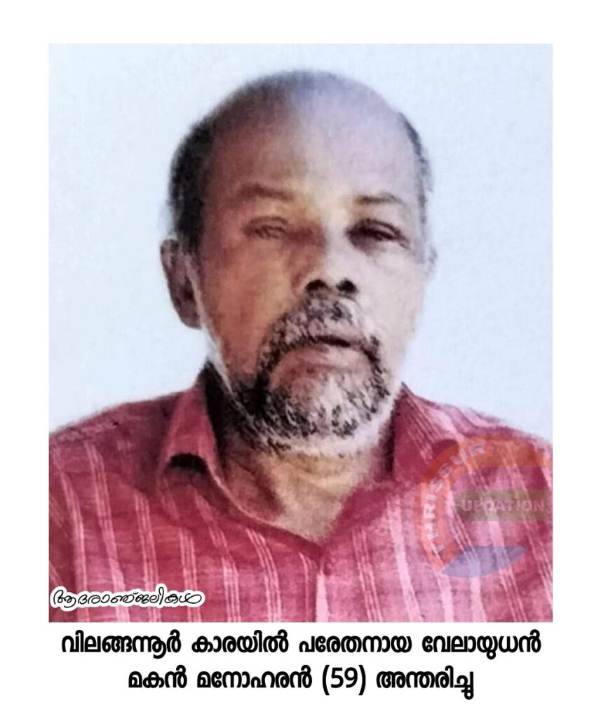 വിലങ്ങന്നൂർ കാരയിൽ പരേതനായ വേലായുധൻ മകൻ മനോഹരൻ (59) അന്തരിച്ചു. സംസ്കാരം ഇന്ന് (31.05.2024) വെള്ളിയാഴ്ച ഉച്ചക്ക് 2 മണിക്ക് വടക്കുംപാടം ആത്മാലയത്തിൽ