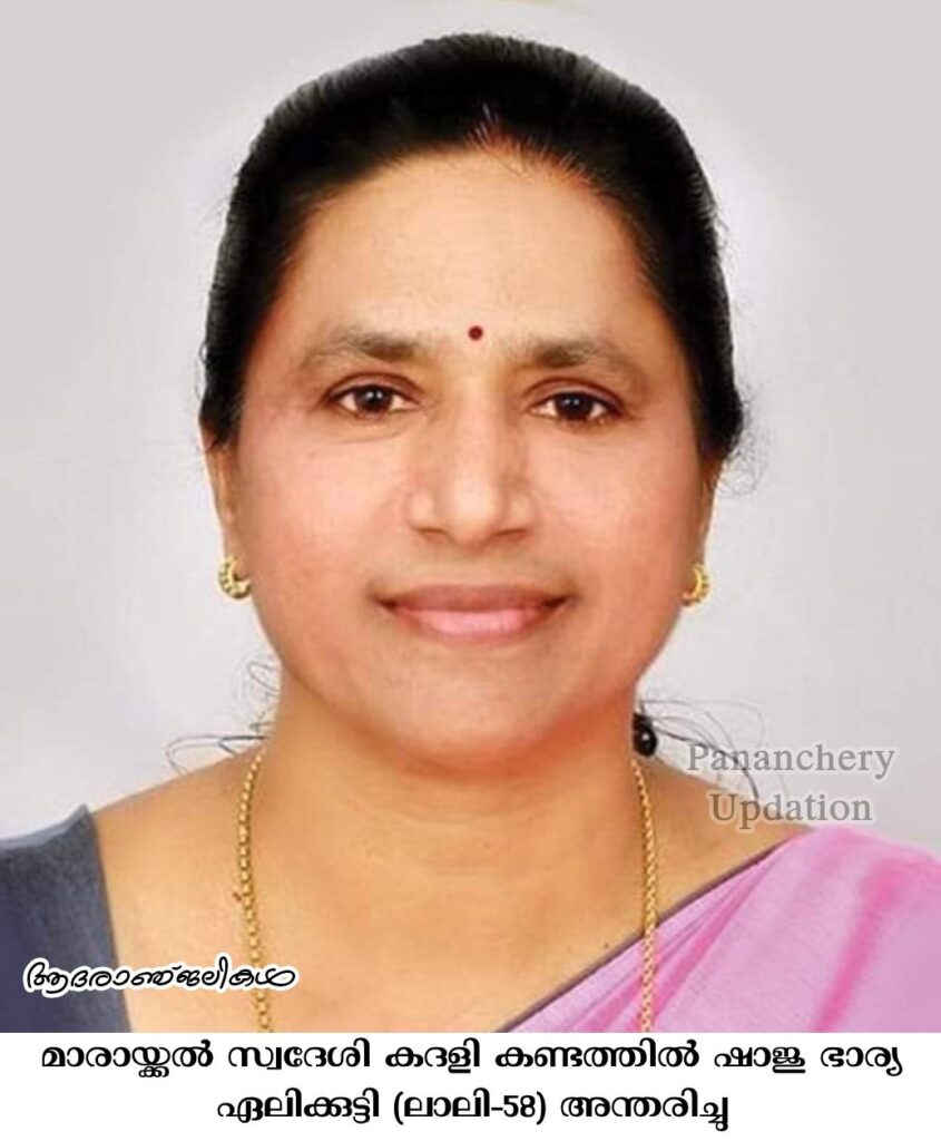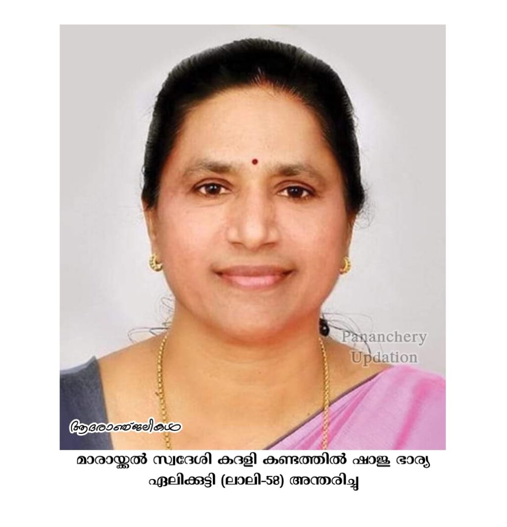 മാരായ്ക്കൽ സ്വദേശി കദളി കണ്ടത്തിൽ ഷാജു ഭാര്യ റിട്ട. അധ്യാപിക ഏലിക്കുട്ടി (ലാലി-58) അന്തരിച്ചു. പീച്ചി പൊടിപ്പാറ വള്ളാംകോട്ട് കുടുംബാംഗമാണ്. സംസ്കാരം ഇന്ന് ( 01.06.2024) ഉച്ചതിരിഞ്ഞ് 3 മണിക്ക് ചിറ്റൂർ അമ്പാട്ടുപാളയം ഹോളി ഫാമിലി ചർച്ച് സെമിത്തേരിയിൽ. മക്കൾ: നിതിൻ, നിഖിൽ. മരുമകൾ: മോണിക്ക റോസ്.