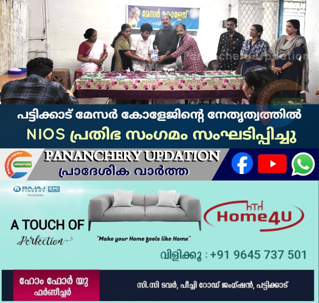 പട്ടിക്കാട് മേസർ കോളേജിന്റെ ആഭിമുഖ്യത്തിൽ 2023-24 അധ്യയന വർഷത്തിൽ Nios പ്ലസ് ടു, Nios എസ്എസ്എൽസി ക്ലാസുകളിൽ പഠിച്ച് ഉന്നത വിജയം കരസ്ഥമാക്കിയ പ്രതിഭകളെ ആദരിച്ചു. പ്രതിഭാ സംഗമം പാണഞ്ചേരി ഗ്രാമപഞ്ചായത്ത് ക്ഷേമകാര്യ സ്റ്റാൻഡിങ് കമ്മിറ്റി ചെയർമാൻ ജലജൻ ഇ ടി ഉദ്ഘാടനം ചെയ്തു.പ്രിൻസിപ്പൽ ലീലാമ്മ തോമസ് അധ്യക്ഷത വഹിച്ചു.ഷീന ക്രിസ്റ്റി,ഷിനി ജോസ്, അഞ്ജന മോഹനൻ, അംബിക ശശി, അഞ്ജലി, സുനി മാസ്റ്റർ, രതീഷ് മാസ്റ്റർ തുടങ്ങിയ അധ്യാപകർ അറിവിന്റെ പുസ്തകങ്ങൾ നൽകി വിദ്യാർത്ഥികളെ ആദരിച്ചു. ആദരവ് ഏറ്റുവാങ്ങിയ വിദ്യാർത്ഥികൾ നന്ദി പ്രകടനം നടത്തി. സ്നേഹ വിരുന്നു കൂടി പ്രതിഭാ സംഗമം അവസാനിച്ചു.
