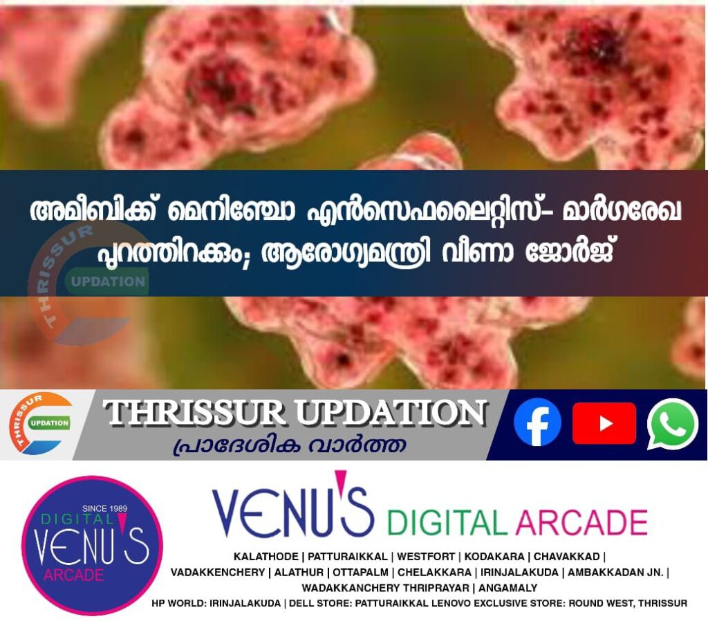 സംസ്ഥാനത്ത് അമീബിക്ക് മെനിഞ്ചോ എൻസെഫലൈറ്റിസിസുമായി ബന്ധപ്പെട്ട് പ്രത്യേക മാർഗരേഖ പുറത്തിറക്കുമെന്നും ജനങ്ങൾക്കിടയിൽ അവബോധം ശക്തിപ്പെടുത്താൻ നിർദേശം നൽകിയതായും ആരോഗ്യമന്ത്രി വീണാ ജോർജ് പറഞ്ഞു. മൂക്കിനെയും മസ്തിഷ്ക്കത്തെയും വേർതിരിക്കുന്ന നേർത്ത പാളിയിൽ അപൂർവമായുണ്ടാകുന്ന സുഷിരങ്ങൾ വഴിയോ കർണപടലത്തിലുണ്ടാകുന്ന സുഷിരം വഴിയോ ആണ് അമീബ തലച്ചോറിലേക്ക് കടക്കുകയും മെനിഞ്ചോ എൻസെഫലൈറ്റിസിസ് ഉണ്ടാക്കുകയും ചെയ്യുന്നത്. അതിനാൽ ചെവിയിൽ പഴുപ്പുള്ള കുട്ടികൾ കുളത്തിലും കെട്ടിക്കിടക്കുന്ന വെള്ളത്തിലും മറ്റും കുളിക്കാൻ പാടില്ല. രോഗലക്ഷണങ്ങൾ കണ്ടാൽ ഉടൻ ചികിത്സ തേടണമെന്ന് മന്ത്രി അഭ്യർത്ഥിച്ചു. ആരോഗ്യ വകുപ്പിന്റെ ഉന്നതല യോഗത്തിൽ സംസാരിക്കുകയായിരുന്നു മന്ത്രി.