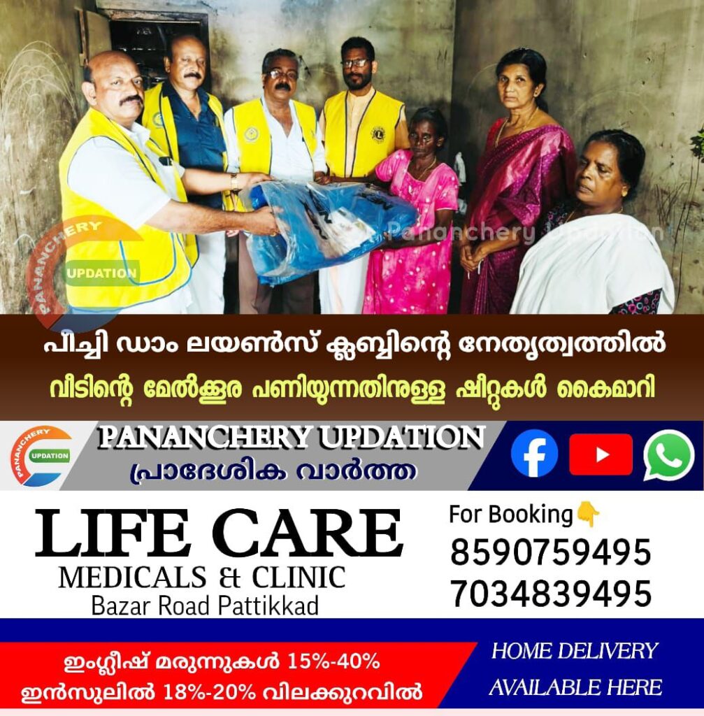 പീച്ചി ഡാം ലയൺസ് ക്ലബ്ബിന്റെ നേതൃത്വത്തിൽ എടപ്പലം ചിറക്കുന്ന് താമസിക്കുന്ന പാലത്ത് പറമ്പിൽ ചന്ദ്രൻ ഭാര്യ ദേവകിയുടെ വീടിൻ്റെ ഓടിട്ട മേൽക്കൂരയിലെ ഓടെല്ലാം ഇളകി പോയതിനാൽ വീട് മുഴുവനും ആയിട്ടും ഷീറ്റ് ഇടുന്നതിന് ഉള്ള ഷീറ്റുകൾ കൈമാറി. വാർഡ് മെമ്പർ ശൈലജ വിജയകുമാർ , പീച്ചി ഡാം ലയൺസ് ക്ലബ്ബ് പ്രസിഡൻറ് ഉലഹന്നാൻ , ട്രഷറർ കുര്യാക്കോസ് കെ ജി , ഡിസ്ട്രിക് ചെയർമാൻ ബാബുകൊള്ളന്നൂർ , മുൻ പ്രസിഡൻറ് റോയ് നൈനാൻ എന്നിവർ പങ്കെടുത്തു
