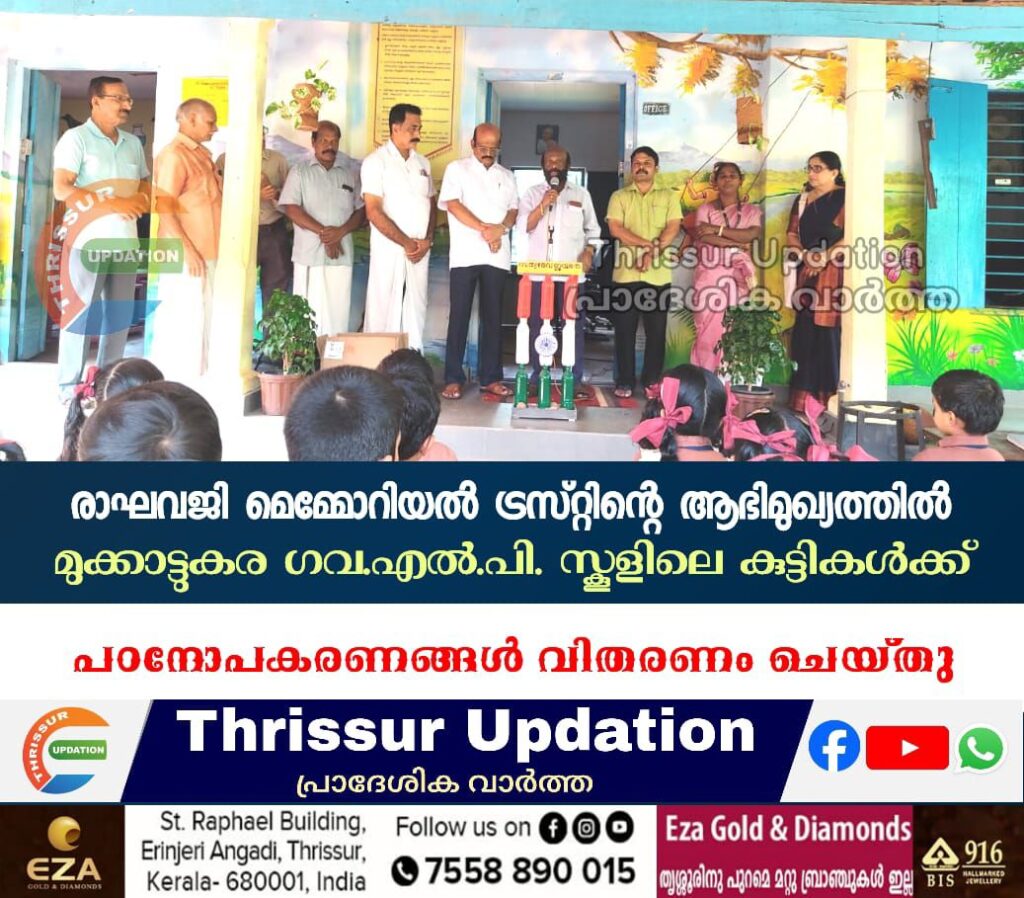 സ്വാതന്ത്ര്യ സമര സേനാനി എൻ.പി. രാഘവ പൊതുവാളിൻ്റെ സ്മരണാർത്ഥം രൂപം കൊണ്ട രാഘവജി മെമ്മോറിയൽ ട്രസ്റ്റിൻ്റെ ആഭിമുഖ്യത്തിൽ മുക്കാട്ടുകര ഗവ.എൽ.പി.സ്കൂളിൽ മുഴുവൻ വിദ്യാർത്ഥികൾക്ക് പഠനോപകരണങ്ങൾ വിതരണം ചെയ്തു.ട്രസ്റ്റ് ചെയർമാൻ എൻ.പി.രാമചന്ദ്രൻ അദ്ധ്യക്ഷത വഹിച്ചു. ചലചിത്ര നിരൂപകൻ ഡോ. അരവിന്ദൻ വല്ലച്ചിറ ഉദ്ഘാടനം നിർവഹിച്ചു. ഹെഡ്മിസ്ട്രസ് പി.വി.വനജ, ലക്ഷ്മിദേവി, കെ.ഗോപാലകൃഷ്ണൻ, ജെൻസൻ ജോസ് കാക്കശ്ശേരി, ശശി നെട്ടിശ്ശേരി, കെ.മാധവൻ, ടി.എസ്.ബാലൻ, ചന്ദ്രൻ കോച്ചാട്ടിൽ, അദ്ധ്യാപകർ, വിദ്യാർത്ഥികൾ എന്നിവർ നേതൃത്വം നൽകി.