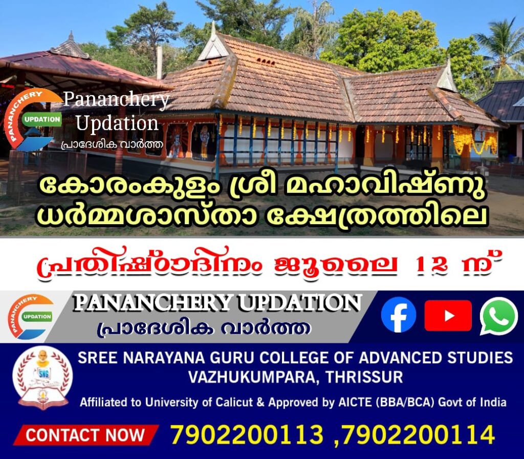 കോരംകുളം മഹാവിഷ്ണുധർമ്മശാസ്താ ക്ഷേത്രത്തിൽ പ്രതിഷ്ഠാദിനം ജൂലൈ 12 വെള്ളിയാഴ്ച നടത്തുന്നു.11 വ്യാഴാഴ്ച വൈകീട്ട് 6 മണിക്ക് ഭഗവത്സേവ, 7 ന് സർപ്പബലി, ശുദ്ധി ക്രിയകൾ എന്നിവയും പ്രതിഷ്ഠാദിന ദിവസം അഷ്ടദ്രവ്യ ഗണപതി ഹോമം, നവകം, പഞ്ചഗവ്യം, 25 കലശം ശ്രീഭുതബലി എന്നിവ നടക്കും. ചടങ്ങുകൾക്ക് തന്ത്രി പാലക്കാട്ടിരി നാരായണൻ നമ്പൂതിരി മുഖ്യകാർമികത്വം വഹിക്കും, രാവിലെ 8 മുതൽ സമ്പൂർണ്ണനാരായണീയ പാരായണം, നിറമാല എന്നിവയും 11 മണി മുതൽ മഹാപ്രസാദ ഊട്ടും വൈകീട്ട് വീശേഷാൽ ദീപാരാധനയും ചുറ്റുവിളക്കും ഭജനയും ഉണ്ടായിരിക്കും. എല്ലാവരേയും പ്രതിഷ്ഠാദിന ചടങ്ങിലേക്കും പ്രസാദ ഊട്ടിലേക്കും ക്ഷണിക്കുന്നതായി ക്ഷേത്രം ഭാരവാഹികൾ അറിയിച്ചു .