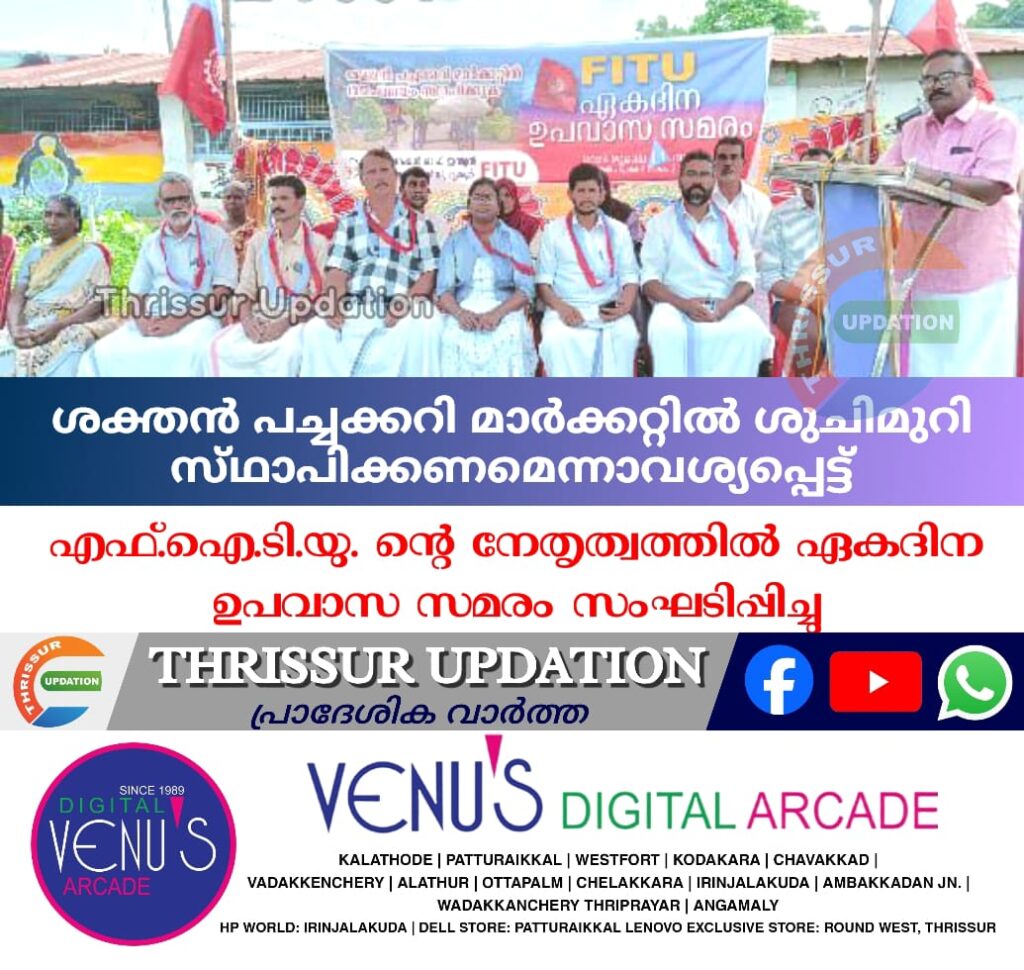 ഇരുനൂറ്റി അമ്പതിൽപരം കടമുറികളുള്ള ശക്തൻ പച്ചക്കറി മാർക്കറ്റിൽ ഒരു ശൗചാലയമില്ലാത്തതിനാൽ മാർക്കറ്റും പരിസരവും കൊതുക് വളർത്ത് കേന്ദ്രമായി മാറിയിരിക്കുകയാണ്. വീട്ടിൽ കൂത്താടി വളരുന്നെന്ന പേരിൽ ഇരിങ്ങാലക്കുടയിൽ ആരോഗ്യ വകുപ്പിൻ്റെ നിർദ്ദേശം പാലിക്കാത്തതിൻ്റെ പേരിൽ കോടതി പിഴയീടാക്കിയ സാഹചര്യത്തിൽ അതേ സർക്കാറിൻ്റെ കീഴിലുള്ള തൃശൂരിലെ ആരോഗ്യ വകുപ്പ് പുലർത്തുന്ന നിസ്സംഗതക്കെതിരെയും ശക്തൻ പച്ചക്കറി മാർക്കറ്റിനെത്തന്നെ കൊതുക് വളർത്ത് കേന്ദ്രമാക്കിയ കോർപ്പറേഷൻ ഭരണസമിതിക്കെതിരെയും കേസെടുക്കണമെന്ന് എഫ് ഐ ടി യു സംസ്ഥാന പ്രസിഡൻ്റ് ജ്യോതി വാസ് പറവൂർ ആരോപിച്ചു.ഉടനെ ശൗചാലയം നിർമ്മിക്കുവാനാവശ്യമായ നടപടിയുണ്ടാവാൻ കോടതി അടിയന്തിരമായ നിർദ്ദേശം നൽകണമെന്നും എഫ് ഐ ടി യു ജില്ലാ കമ്മറ്റി