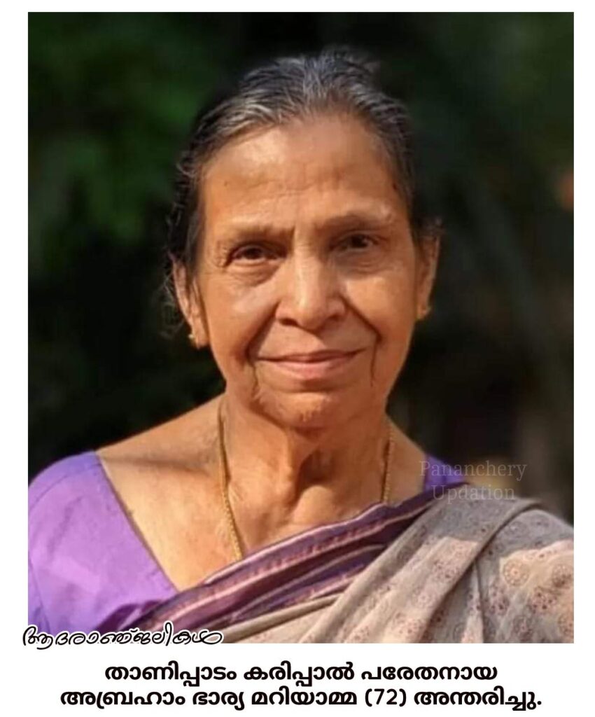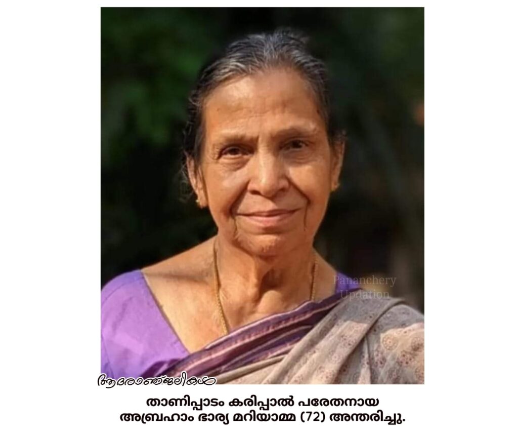 സംസ്കാരം നാളെ (14.07.2024-ഞായറാഴ്ച) ഉച്ചയ്ക്ക് 12 മണിക്ക് വീട്ടിൽ ശുശ്രൂഷ ആരംഭിച്ച് കരിപ്പക്കുന്ന് മാർ ബസേലിയോസ് ഓർത്തഡോക്സ് പള്ളിയിൽ. ചാലാംപാടം കുറ്റിപറിച്ചേൽ കുടുംബാംഗമാണ്. മക്കൾ: ഡാർളി, ഡെന്നിസ്, ഡെജി. മരുമക്കൾ: റോയ്, ഷൈനി, വിൻസില.