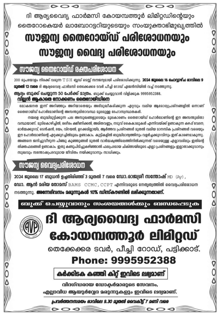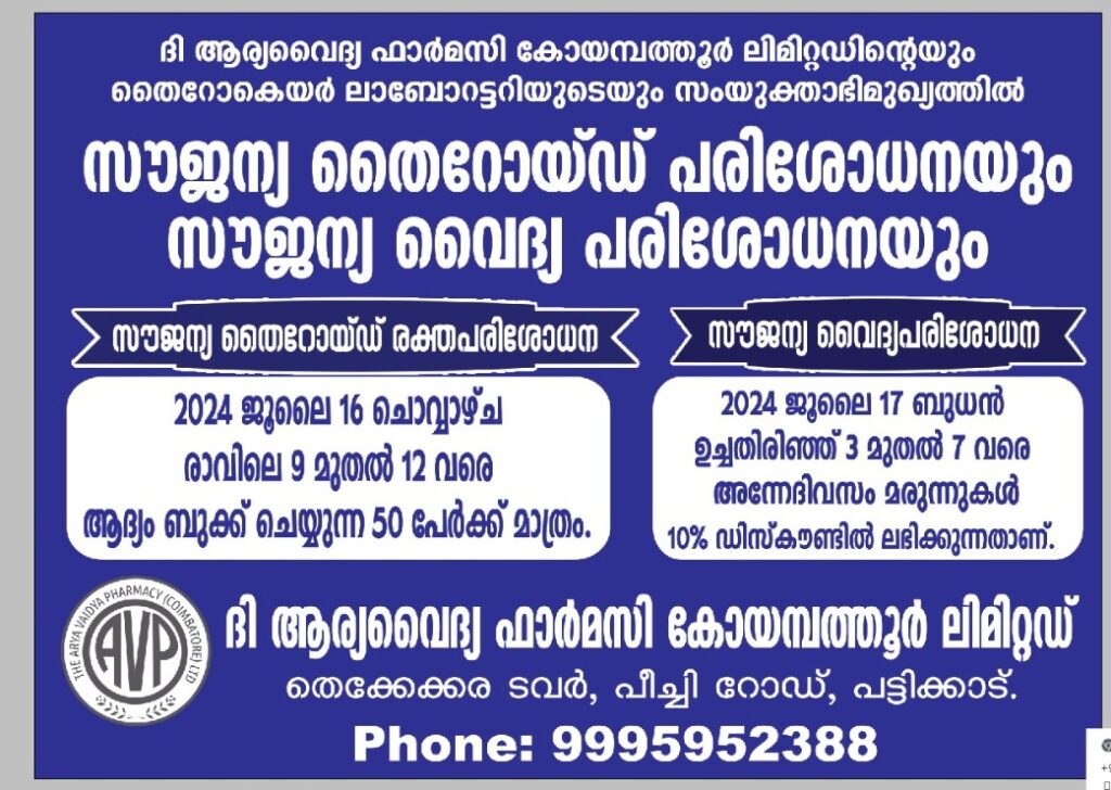 സൗജന്യ തൈറോയ്ഡ് പരിശോധനയും സൗജന്യ വൈദ്യ പരിശോധനയും