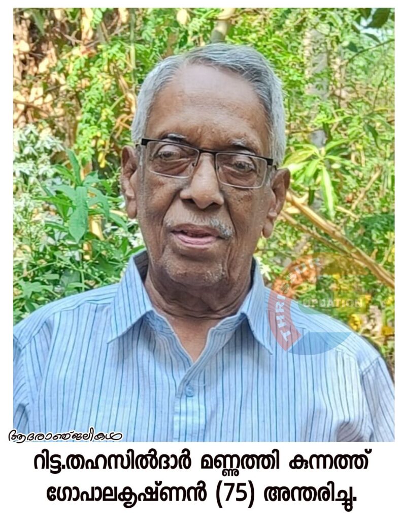 സംസ്കാരം ഇന്ന് (15.07.2024) ഉച്ചയ്ക്ക് 1നു പാറമേക്കാവ് ശാന്തിഘട്ടിൽ. ഭാര്യ: കെ. ശാന്ത. മക്കൾ: ബബിത,ബിനോയ്. മരുമക്കൾ: