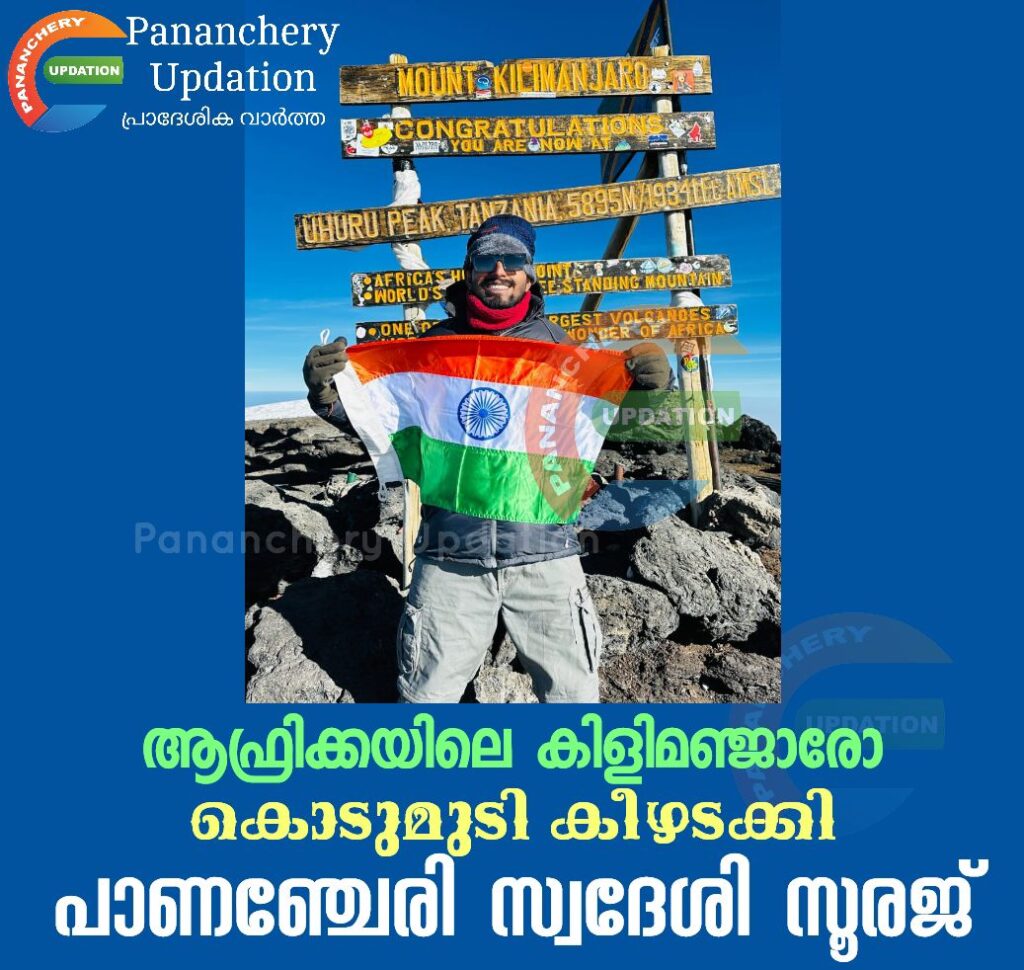 വെല്ലുവിളി നിറഞ്ഞ കിളിമഞ്ജാരോ പർവ്വതം കീഴടക്കുക എന്നത് ലോകമെമ്പാടുമുള്ള പർവതാരോഹകരുടെ ഒരു സ്വപ്നമാണ്. ആഫ്രിക്കൻ ഭൂഖണ്ഡത്തിലെ ഏറ്റവും ഉയരമുള്ള താൻസാനിയയിലെ കിളിമഞ്ജാരോ ആറു ദിവസം കൊണ്ടാണ് 5895 മീറ്റർ ഉയരമുള്ള ആഫ്രിക്കൻ ഭൂകണ്ഡത്തിലെ ഏറ്റവും ഉയരം കൂടിയ ഉഹ്റു കൊടുമുടി പർവ്വതാരോഹകനും സാഹസിക സഞ്ചാരിയുമായ പാണഞ്ചേരി സ്വദേശി സുരജ് രഘുനാഥ് കീഴടക്കിയത്.