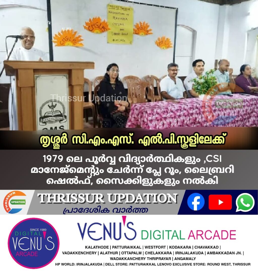 തൃശ്ശൂർ സി.എം.എസ്. എൽ.പി.സ്കൂളിൽ 1979 ലെ പൂർവ്വ വിദ്യാർത്ഥികളും , CSI മാനേജ്മെന്റും ചേർന്ന് സ്കൂളിലെ നേഴ്സറി കുട്ടികൾക്കായ് പ്ലേ റൂമും , എൽ. പി. കുട്ടികൾക്കായ് ലൈബ്രറി ഷെൽഫും , സൈക്ലിംഗ് പരിശീലനത്തിനുള്ള സൈക്കിളുകളും സ്കൂളിലേക്ക് നൽകി.