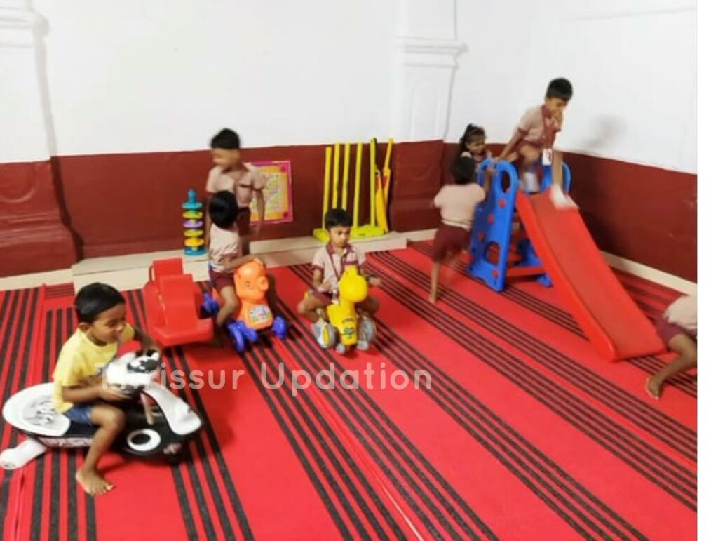 പ്ലേ റൂമും ലൈബ്രറി ഷെൽഫും സൈക്കിളുകളും നൽകി