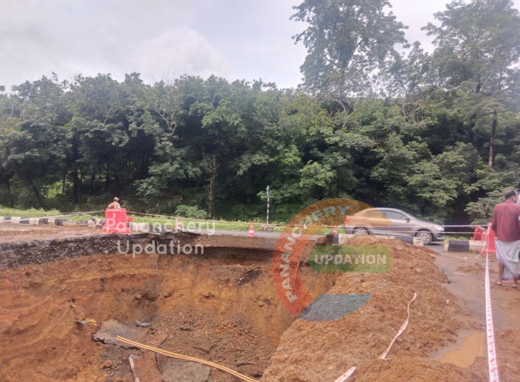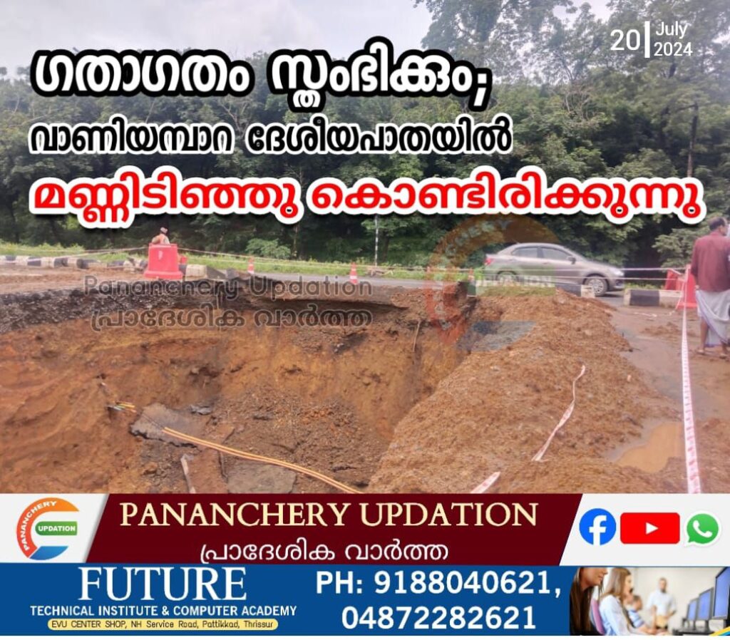 വാണിയമ്പാറ മേലേചുങ്കത്ത് അടിപ്പാതയുമായി ബന്ധപ്പെട്ട് ഫില്ലർ വാർക്കുന്നതിനായി എടുത്ത വലിയ കുഴിയുടെ സമീപത്തുകൂടി പോകുന്ന റോഡിൻെറ ഭാഗമാണ് ഇടിഞ്ഞു കൊണ്ടിരിക്കുന്നത്. നിലവിൽ ഗതാഗത നിയന്ത്രണം ഏർപ്പെടുത്തിയ സർവീസ് റോഡിൻ്റെ അരിക് വശം വേണ്ടത്ര സുരക്ഷാക്രമീകരണങ്ങൾ നടത്താതെ കട്ട് ചെയ്തതാണ് ഇങ്ങനെയൊരു സാഹചര്യം ഉണ്ടായത്. നിലവിൽ രണ്ടുദിവസമായി പെയ്യുന്ന കനത്ത മഴ കാരണം വലിയ രീതിയിലുള്ള പണികൾ ഒന്നും തന്നെ നടക്കുന്നില്ല. മഴ തുടരുന്ന സാഹചര്യത്തിൽ ഇങ്ങനെ മണ്ണിടിഞ്ഞാൽ തൃശ്ശൂർ ദിശയിലേക്കുള്ള ഗതാഗതം പൂർണ്ണമായും സ്തംഭിക്കും. ഗതാഗതം മറുഭാഗത്തുകൂടി തിരിച്ചുവിടാൻ പ്രായോഗികമായി വളരെയധികം ബുദ്ധിമുട്ടുണ്ട്. ഉടൻ നടപടി എടുത്തില്ലെങ്കിൽ തൃശ്ശൂർ ഭാഗത്തേക്കുള്ള ഗതാഗതം വലിയൊരു സ്തംഭനാവസ്ഥയിലേക്ക് എത്തിക്കും.