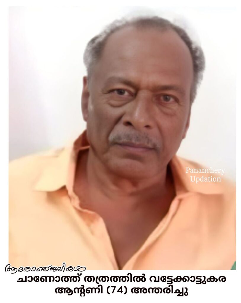 ചാണോത്ത് തത്രത്തിൽ വട്ടേക്കാട്ടുകര ദേവസി മകൻ ആൻറണി (74) അന്തരിച്ചു. സംസ്കാരം ഇന്ന് (21.07.2024- ഞായർ) ഉച്ചതിരിഞ്ഞ് 3 മണിക്ക് സെൻറ് ഫ്രാൻസിസ് സേവിയേഴ്സ് ഫൊറോനാ പള്ളിയിൽ. ഭാര്യ ആനി , മക്കൾ : ഡെയ്സൺ , ജെയ്സൺ ,സിംസൺ ,നിക്സൺ മരുമക്കൾ : വിനീത ,ഫ്രഷി , സിൽജി