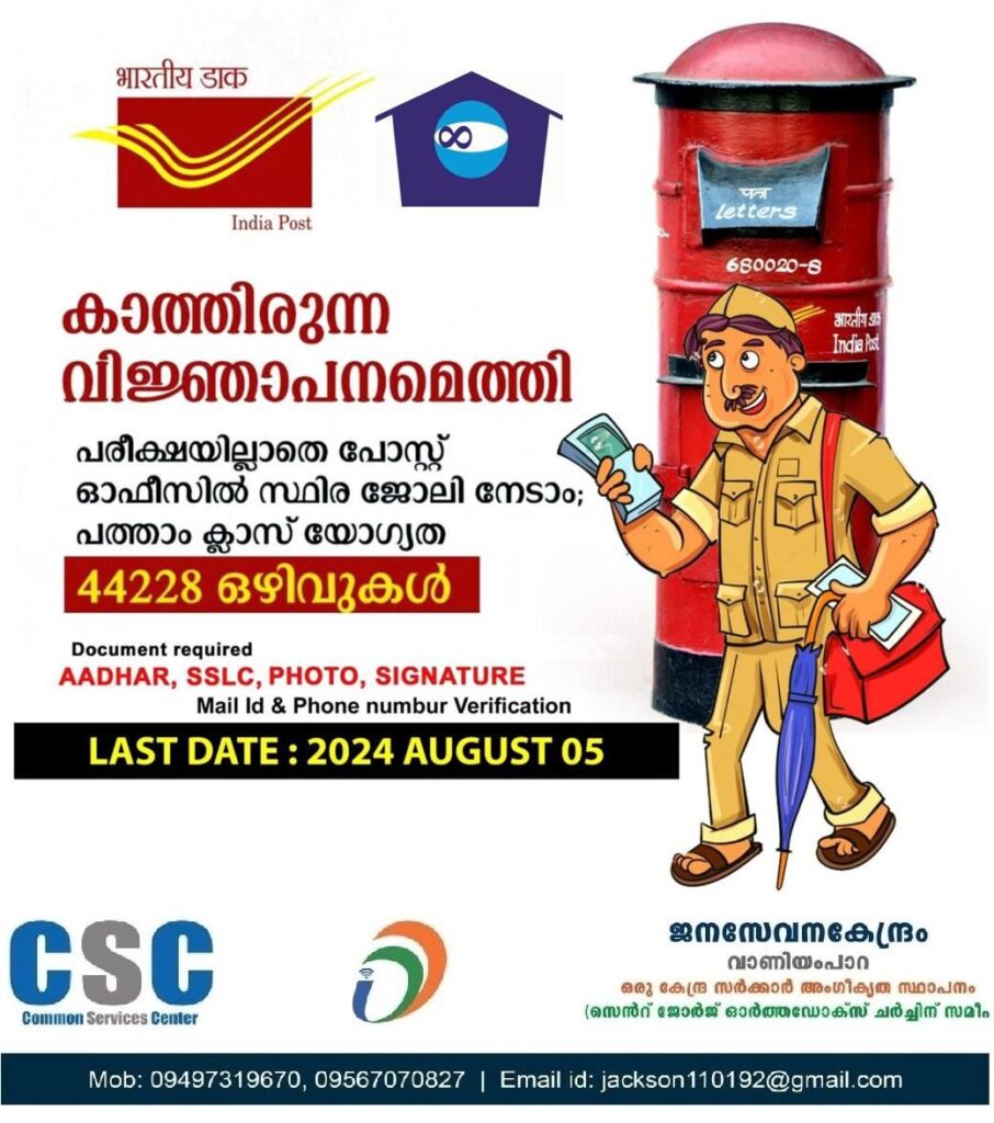 പരീക്ഷയില്ലാതെ പോസ്റ്റ് ഓഫീസിൽ സ്ഥിര ജോലി നേടാം; പത്താം ക്ലാസ് യോഗ്യത