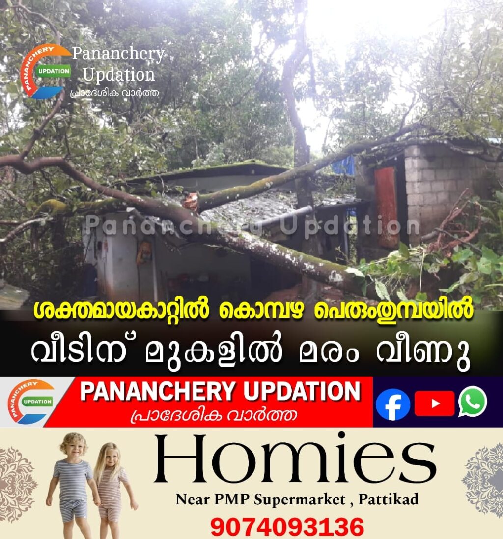 കൊമ്പഴയിൽ ഇന്നലെ ഉണ്ടായ ശക്തമായ കാറ്റിൽ വീടിന് മുകളിൽ മരം വീണു. കൊമ്പഴ പെരുംതുമ്പ മഠത്തിപറമ്പിൽ ജോണിയുടെ വീടിന് മുകളിലാണ് മരം വീണത്. വീടിന് കേടുപാടുകൾ സംഭവിച്ചിട്ടുണ്ട് . വീട്ടിൽ ആൾ ഉണ്ടായിരുന്നു എങ്കിലും വീടിന് പുറകിലെ അസ്പറ്റോസിൽ വീണതിനാൽ അപകടം ഒഴിവായി.