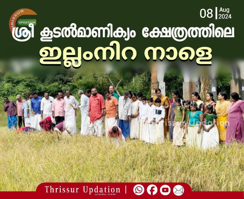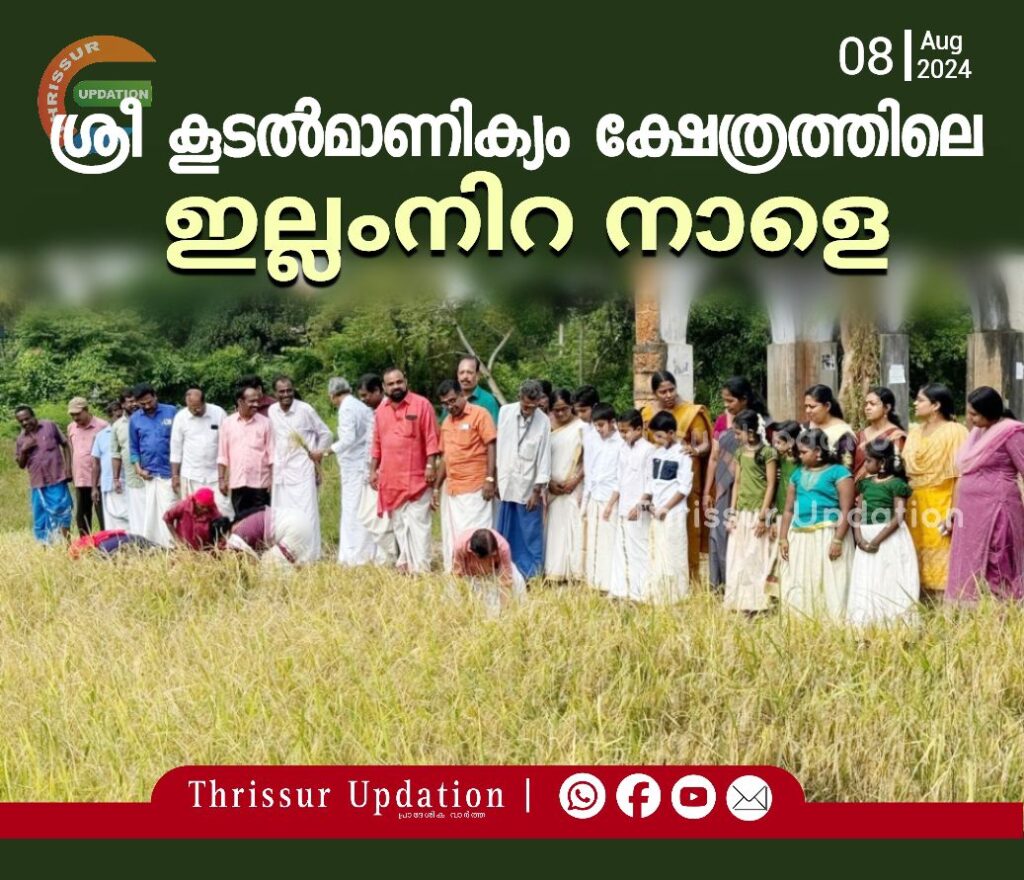 ശ്രീ കൂടൽമാണിക്യം ക്ഷേത്രത്തിലെ ഈ വർഷത്തെ ഇല്ലംനിറ 2024 ആഗസ്റ്റ് 9-ാം തീയതി വെള്ളി രാവിലെ 8.45 മുതൽ 10.45 ന് തന്ത്രി നകരമണ്ണ് ത്രിവിക്രമൻ നമ്പൂതിരിയുടെ മുഖ്യ കാർമ്മികത്വത്തിൽ നടത്തുന്നു. ദേവസ്വത്തിൻ്റെ സ്വന്തം കൃഷിഭൂമിയിൽ നിന്നും കൊയ്തെടുക്കുന്ന കതിരുകളാണ് ഇല്ലംനിറക്ക് ഉപയോഗിക്കുന്നത്. നെൽക്കതിരുകൾ ക്ഷേത്രത്തിന്റെ കിഴക്കേ ഗോപുരത്തിൽ നിന്നും തന്ത്രി, കീഴ്ശാന്തിമാർ എന്നിവർ ശിരസ്സിലേറ്റി നാദസ്വരത്തിൻ്റെ അകമ്പടിയോടെ മണ്ഡപത്തിലേക്ക് എഴുന്നെള്ളിക്കും. പൂജിച്ച നെൽക്കതിരുകൾ ആദ്യം സമർപ്പിച്ച് പിന്നീട് ഭക്തജനങ്ങൾക്ക് പ്രസാദമായി വിതരണം ചെയ്യും. അന്നേ ദിവസം ക്ഷേത്രത്തിലെ എത്യത്ത് പൂജ രാവിലെ 6 മണിക്കായിരിക്കും. കൂടൽമാണിക്യം ദേവസ്വത്തിന്റെ കീഴേടമായ അയ്യങ്കാവ് ഭഗവതി ക്ഷേത്രത്തിൽ അന്നേ ദിവസം ഇല്ലംനിറ നടത്തുന്നതാണ്.