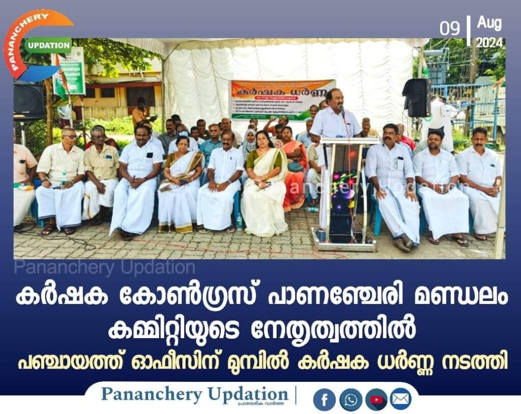 എൽഡിഎഫ് സർക്കാരിന്റെ കർഷക വിരുദ്ധ നയങ്ങൾക്കെതിരെ കർഷക കോൺഗ്രസ് പാണഞ്ചേരി മണ്ഡലം കമ്മിറ്റിയുടെ നേതൃത്വത്തിൽ പാണഞ്ചേരി പഞ്ചായത്ത് ഓഫീസിന് മുമ്പിൽ കർഷക ധർണ്ണ സംഘടിപ്പിച്ചു.