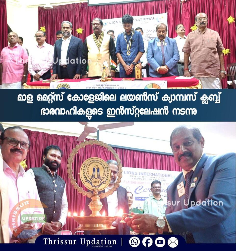 തൃശ്ശൂർ മാള മെറ്റ്സ് കോളേജിലെ ലയൺസ് ക്യാമ്പസ് ക്ലബ്ബ് ഭാരവാഹികളുടെ ഇൻസ്റ്റലേഷൻ 2024 സെറിമണി പി എം ജെ എഫ് 318D ഡിസ്ട്രിക്ട് ചീഫ് അഡ്വൈസർ ലയൺ ഇഗ്നേഷ്യസ് എംഡി നിലവിളക്ക് കൊളുത്തി ഉദ്ഘാടനം ചെയ്തു. തൃശ്ശൂർ ജില്ലയിലെ ലയൺസ് ക്ലബ്ബ് 318 ഡിയുടെ ആദ്യ ക്യാമ്പസ് ക്ലബ് ആയ മെറ്റ്സ് ക്യാമ്പസ് ക്ലബ്ബ് കുഴൂർ ലയൺസ് ക്ലബ്ബ് മുൻകൈയെടുത്ത് സ്ഥാപിച്ചതിന് അദ്ദേഹം കുഴൂർ ലയൺസ് ക്ലബ് ഭാരവാഹികളെ അഭിനന്ദിച്ചു. കൂടാതെ സേവനമാണ് ലയൺസ് ക്ലബ്ബിന്റെ മുഖമുദ്ര എന്നും ക്യാമ്പസിലെ എല്ലാ പ്രവർത്തനങ്ങളിലും ക്ലബ് മെമ്പർമാർ സേവനം നടത്തണമെന്നും പുതിയ ഭാരവാഹികളെ അദ്ദേഹം ഓർമിപ്പിച്ചു. മെറ്റ്സ് ക്യാമ്പസ് ക്ലബ്ബിന്റെ 2024 വർഷത്തെ പ്രസിഡണ്ടായി ലയൺ മുഹമ്മദ് ഫഹീം പി.ആർ, സെക്രട്ടറിയായി ലയൺ അബൂബക്കർ ബഷീർ മൊയ്തീൻ, ട്രഷററായി ലയൺ അംജദ് അജ്മൽ, അഡ്മിനിസ്ട്രേറ്ററായി മെറ്റ്സ് കോളേജ് ഓഫ് അഡ്വാൻസ് സ്റ്റഡീസ് പ്രിൻസിപ്പാൾ ഡോ. ഫോൺസി ഫ്രാൻസിസ്, ഡയറക്ടറായി മരിയാ നിൽജി (കോളേജ് ലൈബ്രറിയൻ) എന്നിവരെ തിരഞ്ഞെടുത്തു. ചടങ്ങിൽ അധ്യക്ഷത വഹിച്ചത് മെറ്റ്സ് ഗ്രൂപ്പ് ഓഫ് ഇൻസ്റ്റ്യൂഷൻസ് സിഇഒ ഡോ. വർഗ്ഗീസ് ജോർജ് ആണ്.