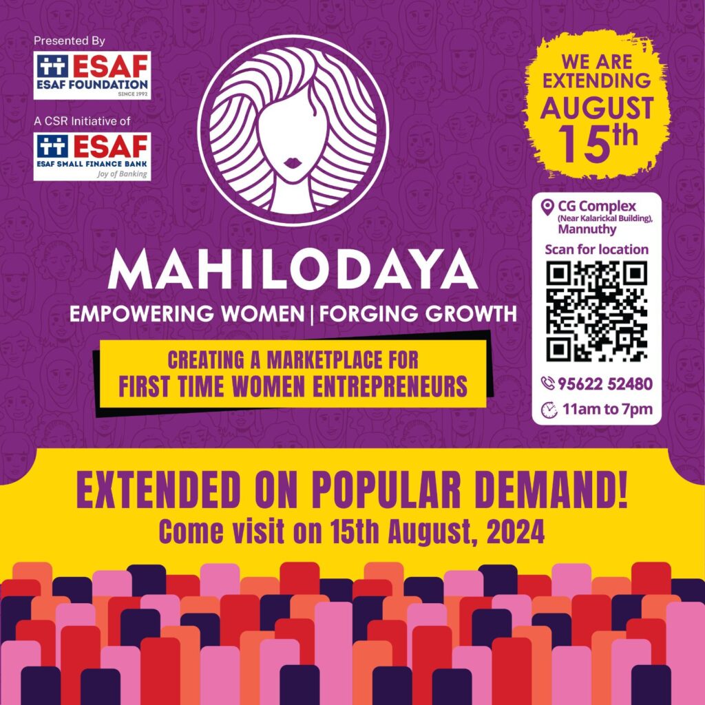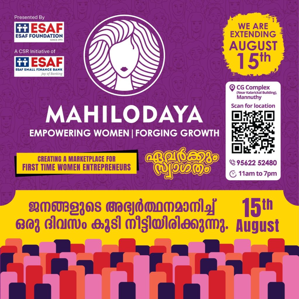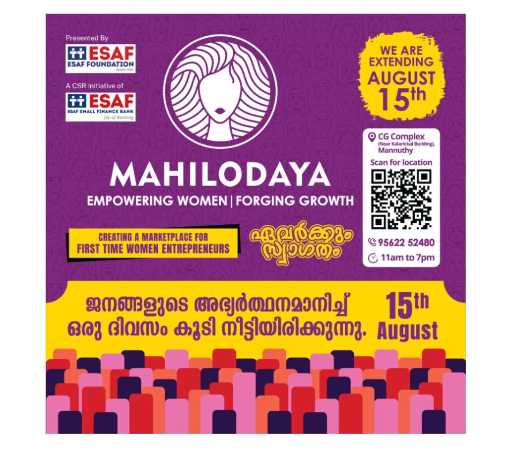 Local News മഹിളോദയ പ്രദർശനം By Author / August 14, 2024 Share this News ഇസാഫ് ഫൗണ്ടേഷൻ ആദ്യമായി വനിതാ സംരംഭകരുടെ വിപണന കേന്ദ്രമായ മഹിളോദയ പ്രദർശനം ഓഗസ്റ്റ് 12, 13, 14,15 തീയതികളിൽ മണ്ണുത്തിയിലെ സിജി കോംപ്ലക്സിൽ (കളരിക്കൽ ബിൽഡിങ്ങിനു സമീപം, മണ്ണുത്തി ബൈപാസിനു സമീപം) നടത്തുന്നു. Post Views: 98 Post navigation Previous സ്തുത്യർഹ സേവനത്തിനുള്ള മുഖ്യമന്ത്രിയുടെ പോലീസ് മെഡലിന് തൃശൂർ സിറ്റി ഗ്രേഡ് സീനിയർ സിവിൽ പൊലീസ് ഓഫീസറായ എം. ഡി സംഗീത് അർഹനായിNext പാണഞ്ചേരി മണ്ഡലം മഹിളാ കോൺഗ്രസ് കമ്മിറ്റിയുടെ നേതൃത്വത്തിൽ ഭക്ഷ്യകിറ്റുകൾ വിതരണം ചെയ്തു