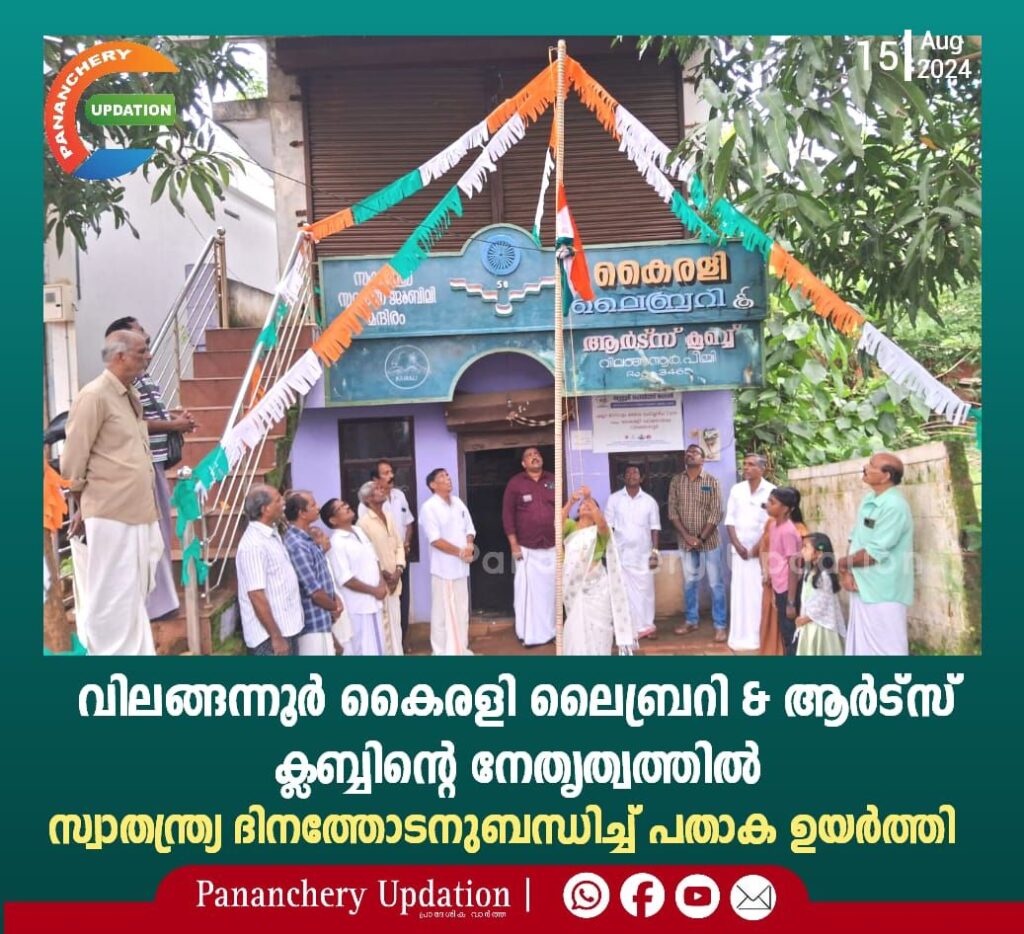 വിലങ്ങന്നൂർ കൈരളി ലൈബ്രറി & ആർട്സ് ക്ലബ്ബിന്റെ ആഭിമുഖ്യത്തിൽ സ്വാതന്ത്ര്യ ദിനത്തോടനുബന്ധിച്ച് പ്രസിഡൻറ് ശകുന്തള ഉണ്ണികൃഷ്ണൻ പതാക ഉയർത്തി.ചടങ്ങിൽ റോബിൻ അധ്യക്ഷൻ ആയിരുന്നു. സ്വാതന്ത്ര്യ ദിനത്തോടനുബന്ധിച്ച് നടത്തുന്ന പുസ്തകപ്രദർശനം പൊതുജനങ്ങൾക്കും വിദ്യാർത്ഥികൾക്കും ആയി ആരംഭിച്ചു. ജോർജ് പൊടിപാറ പരിപാടിയിൽ പങ്കെടുത്ത് സംസാരിച്ചു.