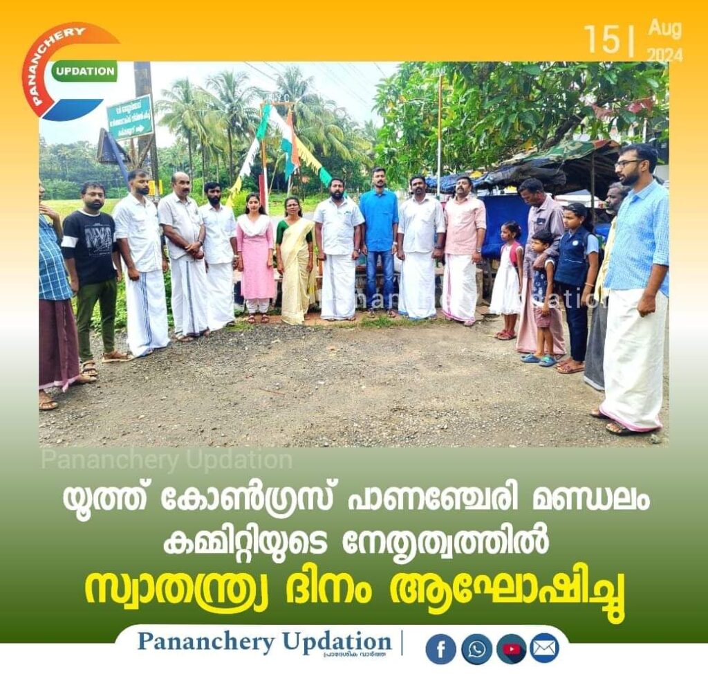യൂത്ത് കോൺഗ്രസ് പാണഞ്ചേരി മണ്ഡലം കമ്മിറ്റിയുടെ നേതൃത്വത്തിൽ, ഇന്ത്യയുടെ 78-ാംമത് സ്വാതന്ത്ര്യ ദിനം സമുചിതമായി ആഘോഷിച്ചു. പള്ളിക്കണ്ടം രാജീവ് ഗാന്ധി സ്മൃതി മണ്ഡപത്തിൽ നടന്ന പരിപാടിക്ക് മണ്ഡലം പ്രസിഡന്റ് ജിഫിൻ ജോയ് അധ്യക്ഷത വഹിച്ചു. മണ്ഡലം ജനറൽ സെക്രട്ടറി ലിജ ബിനു ദേശീയ പതാക ഉയർത്തി. സ്വാതന്ത്ര്യദിന സന്ദേശം നൽകി. വയനാട്ടിലെ പ്രളയ ബാധിതർക്ക് ഭവന നിർമ്മാണത്തിന് വേണ്ടി, യൂത്ത് കോൺഗ്രസ് സംസ്ഥാന കമ്മിറ്റി ആഹ്വാനം ചെയ്തിട്ടുള്ള ന്യൂസ് പേപ്പർ ചലഞ്ചിനും മണ്ഡലത്തിൽ തുടക്കം കുറിച്ചു.