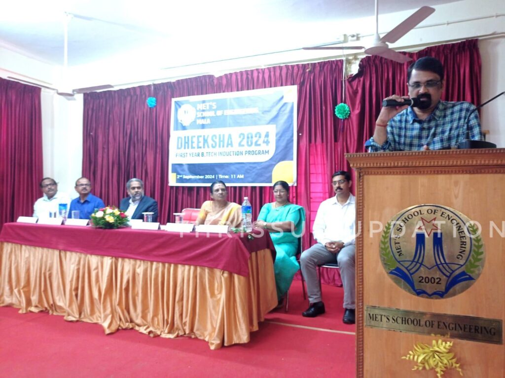 തൃശ്ശൂർ മാള മെറ്റ്സ് സ്കൂൾ ഓഫ് എഞ്ചിനീയറിങ്ങിലെ ബിടെക് കോഴ്സിലെ ഒന്നാം വർഷ വിദ്യാർത്ഥികളുടെ ഇൻഡക്ഷൻ പ്രോഗ്രാം “ദീക്ഷ 2K24” ശ്രീ ശങ്കരാചാര്യ സംസ്കൃത സർവകലാശാല പ്രൊഫ. (ഡോ.) മുരളികൃഷ്ണൻ ടി ആർ, നിലവിളക്ക് കൊളുത്തി ഉദ്ഘാടനം ചെയ്തു. രണ്ടാഴ്ച നീണ്ടുനിൽക്കുന്ന പ്രോഗ്രാമിൽ ഓരോ ദിവസവും വിവിധ മേഖലകളിലെ വിദഗ്ദർ ക്ലാസെടുക്കും. പുതിയ സിലബസ് അനുസരിച്ചുള്ള ബിടെക് കോഴ്സിന്റെ പ്രത്യേകതകളെക്കുറിച്ചും വിദ്യാർത്ഥികൾക്ക് തിരഞ്ഞെടുക്കാവുന്ന വിഷയങ്ങളെക്കുറിച്ചും ക്ലാസുകൾ ഉണ്ടായിരിക്കും. മെറ്റ്സ് ഗ്രൂപ്പ് ഓഫ് ഇൻസ്റ്റിറ്റ്യൂഷൻസ് സി.ഇ.ഒ. ഡോ. വർഗീസ് ജോർജ് അധ്യക്ഷത വഹിച്ച ചടങ്ങിൽ അക്കാദമിക് ഡയറക്ടർ ഡോ. എ. സുരേന്ദ്രൻ ആമുഖപ്രഭാഷണം നടത്തി. മെറ്റ്സ് സ്കൂൾ ഓഫ് എഞ്ചിനീയറിങ്ങ് പ്രിൻസിപ്പാൾ പ്രൊഫ. (ഡോ.) അംബികാദേവി അമ്മ ടി., സ്വാഗതവും കോളേജിൽ വിദ്യാർത്ഥികൾക്കുള്ള വിവിധ ഇൻഫ്രാസ്ട്രക്ചർ ഫെസിലിറ്റീസിനെ കുറിച്ചും സംസാരിച്ചു. മെറ്റ്സ് കോളേജ് ഓഫ് അഡ്വാൻസ്ഡ് സ്റ്റഡീസ് പ്രിൻസിപ്പാൾ പ്രൊഫ. (ഡോ.) ഫോൺസി ഫ്രാൻസിസ്, മെറ്റ്സ് ഗ്രൂപ്പ് ഓഫ് ഇൻസ്റ്റിറ്റ്യൂഷൻസ് അഡ്മിനിസ്ട്രേറ്റീവ് ഡയറക്ടർ റിനൂജ് ഖാദർ, മെറ്റ്സ് പോളിടെക്നിക് കോളേജ് പ്രിൻസിപ്പാൾ പ്രൊഫ. റെയ്മോൻ പി. ഫ്രാൻസിസ്, മെറ്റ്സ് സ്കൂൾ ഓഫ് എൻജിനീയറിങ്ങ് സ്റ്റുഡൻസ് യൂണിയൻ ജനറൽ സെക്രട്ടറി മീവൽ പി സജി തുടങ്ങിയവർ ആശംസകൾ അർപ്പിച്ചു സംസാരിച്ചു. ചടങ്ങിൽഎപിജെ അബ്ദുൽ കലാം ടെക്നോളജിക്കൽ യൂണിവേഴ്സിറ്റി നടത്തിയ ബിടെക് ബയോടെക്നോളജി നാലാം സെമസ്റ്റർ പരീക്ഷയിൽ സംസ്ഥാനതലത്തിൽ ഒന്നാം സ്ഥാനം നേടിയ പി. നന്ദനക്കും (ഗ്രേഡ് 10) മികച്ച വിജയം നേടിയ (ഗ്രേഡ് 9.8)അൽന സജുവിനും പുരസ്കാരങ്ങൾ വിതരണം ചെയ്തു. നവാഗതരായ മുഴുവൻ വിദ്യാർത്ഥികളും രക്ഷിതാക്കളും ഈ ചടങ്ങിൽ സജീവമായി പങ്കെടുത്തു. ഒന്നാംവർഷ ബിടെക് കോർഡിനേറ്ററും എൻഎസ്എസ് പ്രോഗ്രാം ഓഫീസറുമായ പ്രൊഫ. കെ.എൻ. രമേഷ്, നന്ദി പ്രകാശിപ്പിച്ചു. ദേശീയ ഗാനാലാപനത്തോട് കൂടി ചടങ്ങ് അവസാനിച്ചു.