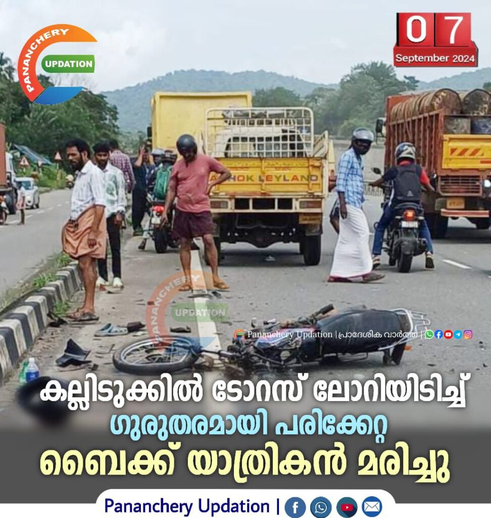 കല്ലിടുക്കിൽ ടോറസ് ലോറിയിടിച്ച് ഗുരുതരമായി പരിക്കേറ്റ ബൈക്ക് യാത്രികൻ മരിച്ചു