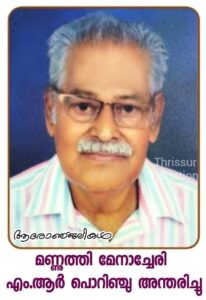 മണ്ണുത്തിയിലെ പ്രമുഖ വ്യാപാരി മേനാച്ചേരി എം.ആർ പൊറിഞ്ചു (84) അന്തരിച്ചു. സംസ്കാരം നാളെ ഉച്ചതിരിഞ്ഞ് നാലുമണിക്ക് മണ്ണുത്തി സെന്റ് ആന്റണീസ് പള്ളിയിൽ. ഭാര്യ: മേരി ,മക്കൾ: സന്തോഷ്, നിഷ