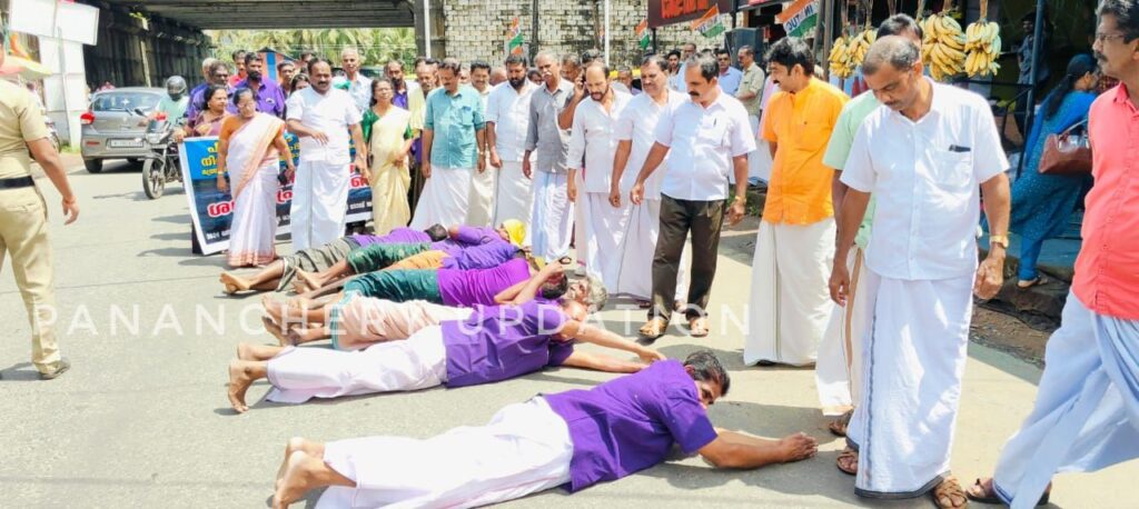 വിലങ്ങന്നൂർ മുതൽ പട്ടിക്കാട് പീച്ചി റോഡ് ജംഗ്ഷൻ വരെയുള്ള 5.30 കിലോമീറ്റർ മലയോര ഹൈവേയുടെ നിർമ്മാണ സ്തംഭനത്തിനെതിരെ പാണഞ്ചേരി മണ്ഡലം ഐഎൻടിയുസി കമ്മറ്റിയുടെ നേതൃത്വത്തിൽ പീച്ചി റോഡ് ജംഗ്ഷനിൽ പ്രതീകാത്മക പ്രതിഷേധ ശയന പ്രദക്ഷണം സംഘടിപ്പിച്ചു. ഐഎൻടിയുസി മണ്ഡലം പ്രസിഡന്റ് ബാബു പാണം കുടിയിൽ അധ്യക്ഷത വഹിച്ചു. കോൺഗ്രസ് ജില്ലാ നിർവാഹക സമിതി അംഗം കെ സി അഭിലാഷ് സമരം ഉദ്ഘാടനം ചെയ്തു.