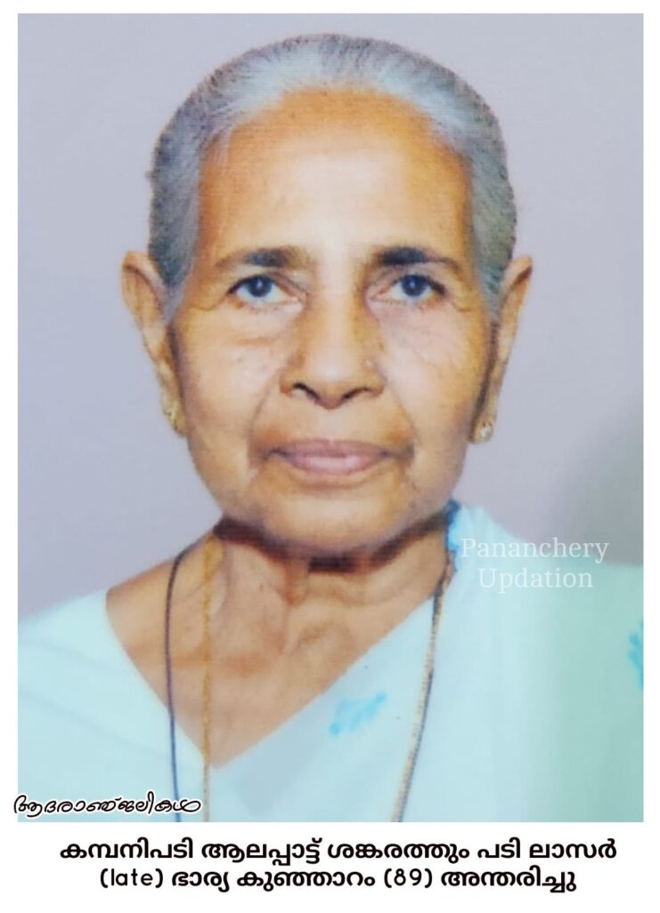കണ്ണാറ കമ്പനിപടി ആലപ്പാട്ട് ശങ്കരത്തും പടി ലാസർ (late) ഭാര്യ കുഞ്ഞാറം (89) അന്തരിച്ചു. സംസ്കാരം ഇന്ന് (14.09.2024 ) വൈകുന്നേരം 4:30ന് സെന്റ്. ജോസഫ് കണ്ണാറ ദേവാലയത്തിൽ. മക്കൾ : വർഗീസ്, പോൾ, മാർട്ടിൻ മരുമക്കൾ : ബേബി, ടീന, ബിന്ദു, ജിൻസി