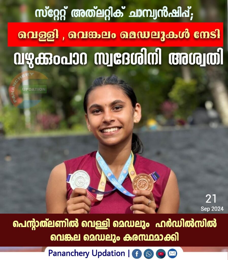 വെള്ളി , വെങ്കലം മെഡലുകൾ നേടി വഴുക്കുംപാറ സ്വദേശിനി അശ്വതി