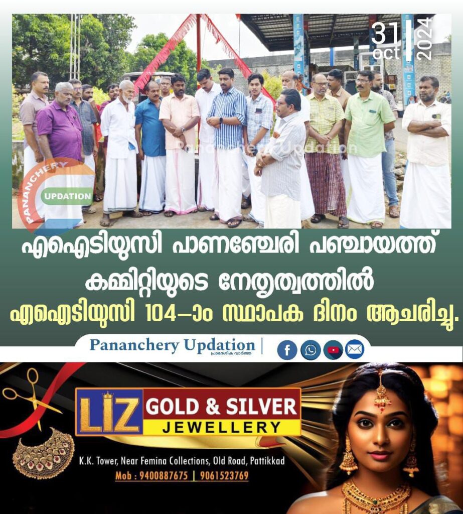 ഒക്ടോബർ 31 എഐടിയുസി സ്ഥാപകദിനത്തിൻ്റെ ഭാഗമായി ചിക്കൻ വർക്കേഴ്സ് ആൻഡ് ഓണേഴ്സ് ഫെഡറേഷൻ പാണഞ്ചേരി പഞ്ചായത്ത് കമ്മിറ്റിയുടെ നേതൃത്വത്തിൽ പട്ടിക്കാട് സെൻററിൽ സമീപമുള്ള പെട്രോൾ പമ്പിന് മുൻപിലായി സ്ഥാപിച്ച പുതിയ കൊടിക്കാലിൽ CPI പാണഞ്ചേരി ലോക്കൽ സെക്രട്ടറി സനിൽ വാണിയംപാറ AITUC പതാക ഉയർത്തി, AITUC പാണഞ്ചേരി പഞ്ചായത്ത് സെക്രട്ടറി ഷിജോൺ അലൻജീസ് അധ്യക്ഷത വഹിച്ച യോഗത്തിൽ ,