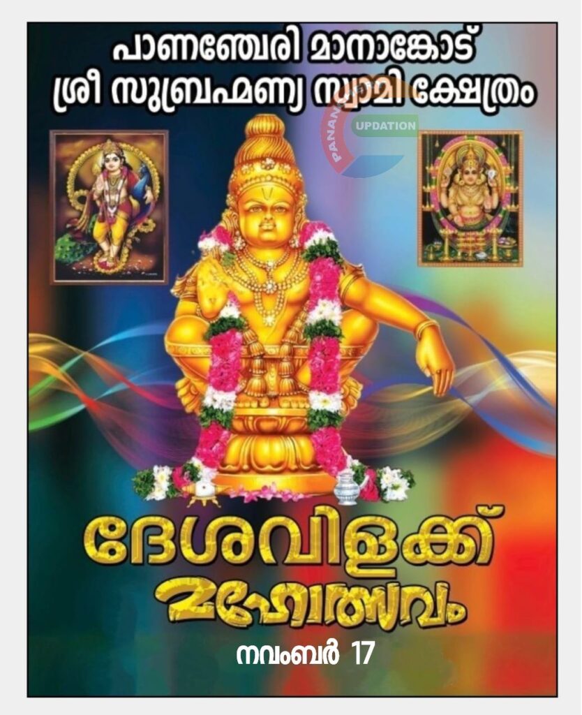 പാണഞ്ചേരി മാനാങ്കോട് ശ്രീ സുബ്രഹ്മണ്യ സ്വാമി ക്ഷേത്രത്തിലെ ദേശവിളക്ക് മഹോത്സവം നവംബർ 17 ഞായറാഴ്ച നടത്തുന്നു.