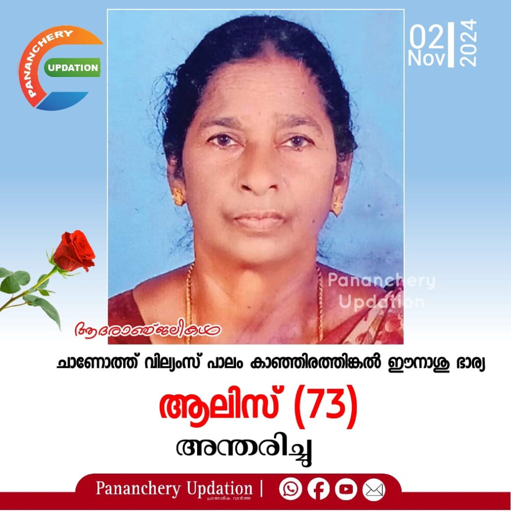ചാണോത്ത് വില്യംസ് പാലം കാഞ്ഞിരത്തിങ്കൽ ഈനാശു ഭാര്യ ആലിസ് (73) അന്തരിച്ചു