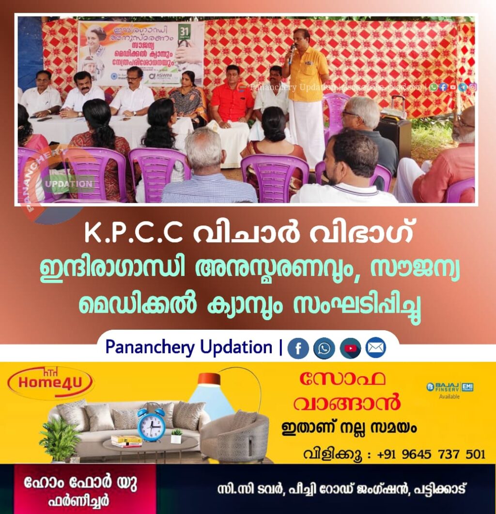 K.P.C.C വിചാർ വിഭാഗ് ഇന്ദിരാഗാന്ധി അനുസ്മരണവും, സൗജന്യ മെഡിക്കൽ ക്യാമ്പും സംഘടിപ്പിച്ചു