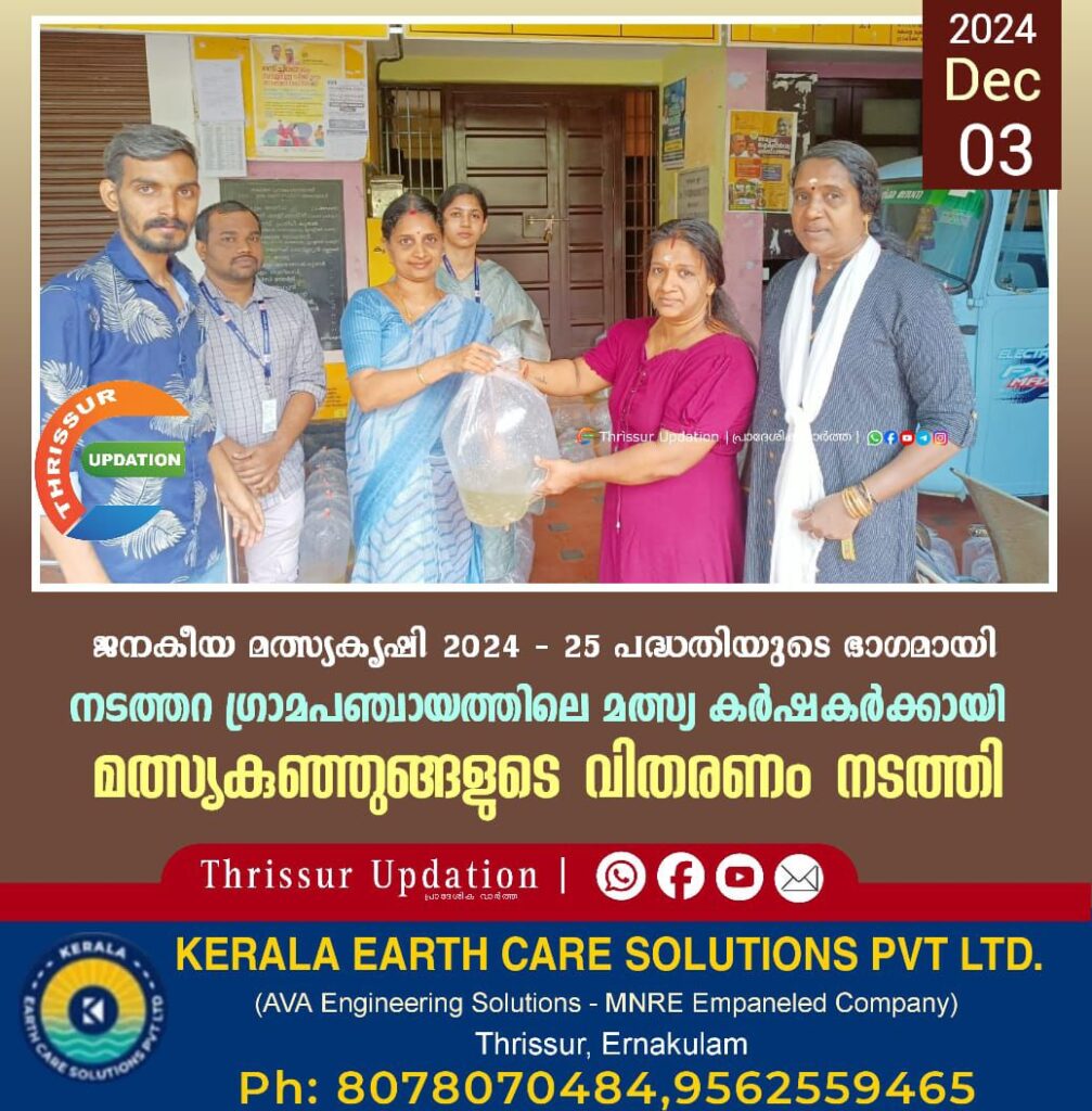 നടത്തറ ഗ്രാമപഞ്ചായത്തിലെ മത്സ്യ കർഷകർക്കായി മത്സ്യകുഞ്ഞുങ്ങളുടെ വിതരണം നടത്തി