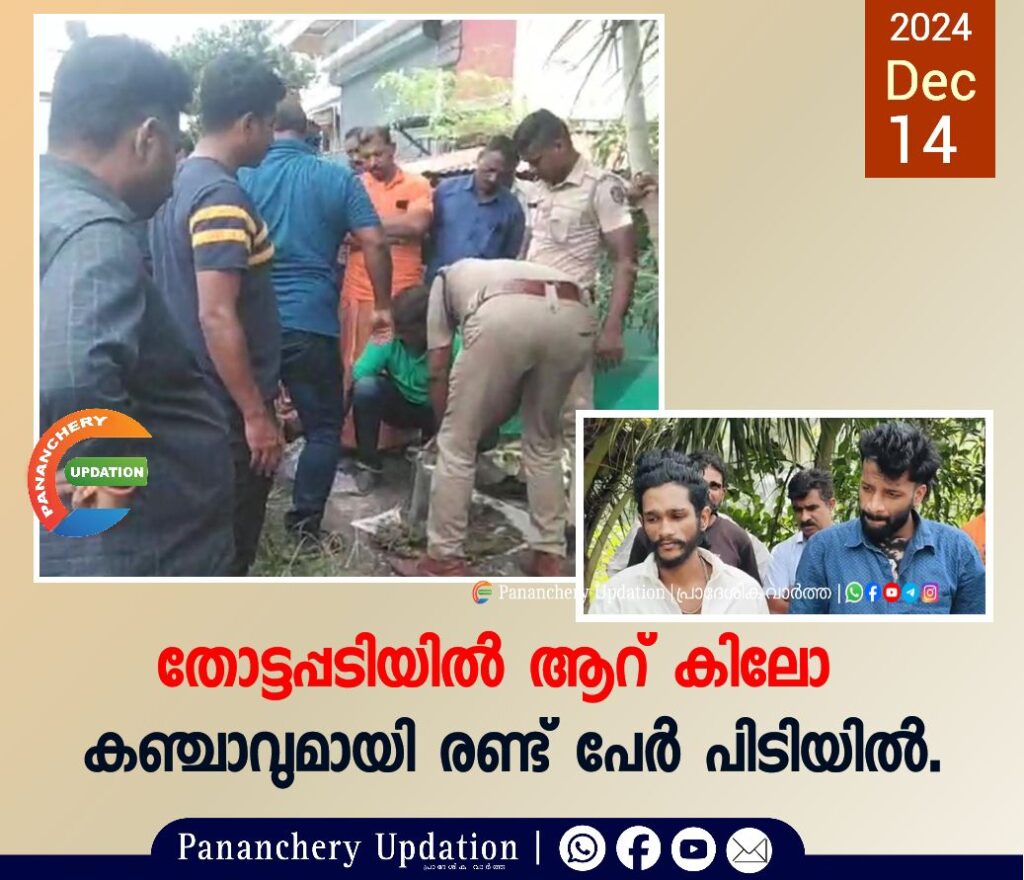 തോട്ടപ്പടിയിൽ ആറ് കിലോ കഞ്ചാവുമായി രണ്ട് പേർ പിടിയിൽ.