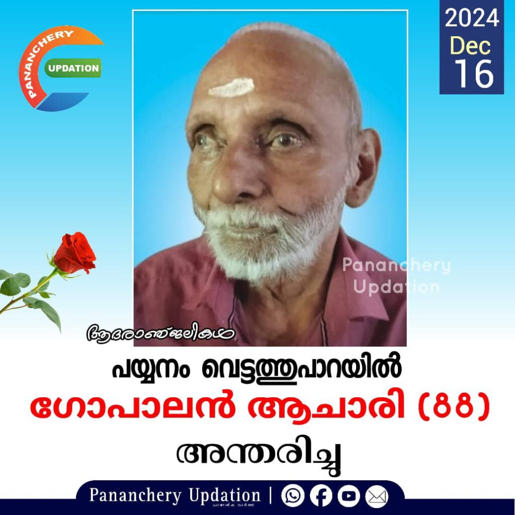 പയ്യനം വെട്ടത്തുപാറയിൽ ദാമോദരൻ മകൻ ഗോപാലൻ ആചാരി (88) അന്തരിച്ചു