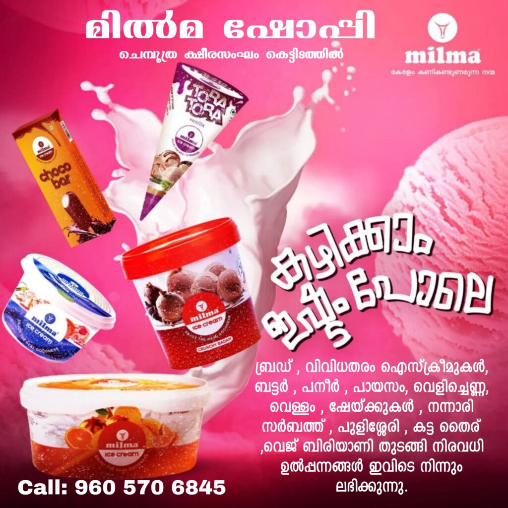 ബ്രഡ് , വിവിധതരം ഐസ്ക്രീമുകൾ, ബട്ടർ , പനീർ , പായസം, വെളിച്ചെണ്ണ, വെള്ളം , ഷേയ്ക്കുകൾ , നന്നാരി സർബത്ത് , പുളിശ്ശേരി , കട്ട തൈര് , long life gold milk , (use jim)വെജ് ബിരിയാണി തുടങ്ങി നിരവധി ഉൽപ്പന്നങ്ങൾ ഇവിടെ നിന്നും ലഭിക്കുന്നു.