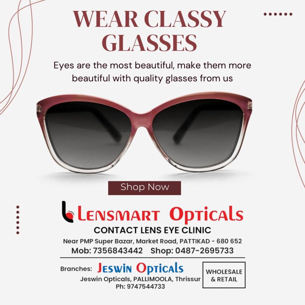 ലെൻസ് മാർട്ട് ഒപ്റ്റിക്കൽസിൻ്റെ ഒന്നാം വാർഷികത്തോടനുബന്ധിച്ച് 2025 ജനുവരി 30 വരെ എല്ലാവിധ ഫ്രെയിമുകൾക്കും ലെൻസുകൾക്കും 10 % മുതൽ 20 % വരെ ഡിസ്കൗണ്ടുകൾ ലഭ്യമാണ്. എല്ലാ ദിവസവും രാവിലെ 9 മുതൽ വൈകീട്ട് 7 വരെ സൗജന്യ കാഴ്ച പരിശോധന ഉണ്ടായിരിക്കുന്നതാണ്.