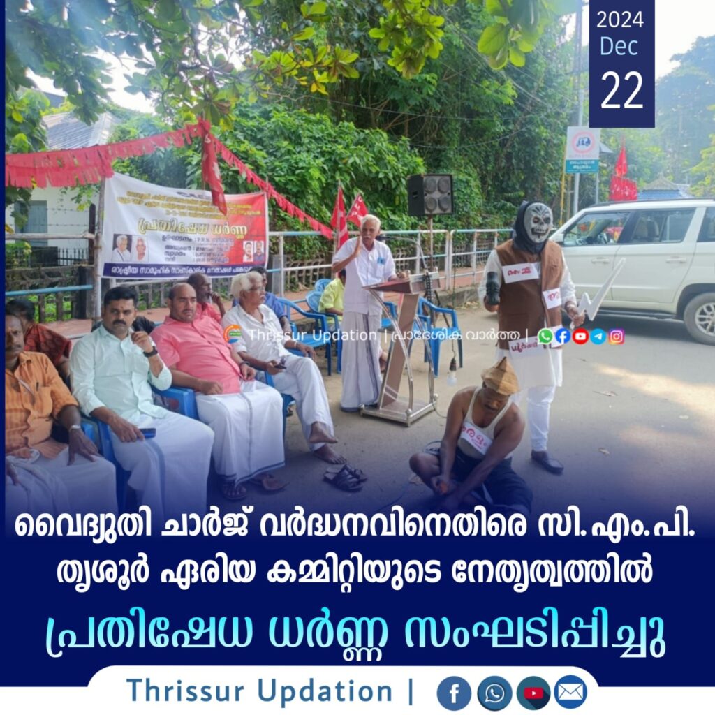 ജീവിത പ്രയാസങ്ങൾകൊണ്ട് വീർപ്പുമുട്ടുന്ന കേരളീയ സമൂഹത്തെ വൈദ്യുതി ചാർജ് വീണ്ടും വർദ്ധിപ്പിച്ച് കൊണ്ട് ദുരന്തത്തിലേക്ക് തള്ളി വിടുന്ന പിണറായി സർക്കാർ ഭരണഘടന ലംഘനം ചെയ്തിരിക്കുകയാണെന്ന് സി.എം.പി. സംസ്ഥാന സെക്രട്ടറിയേറ്റ് അംഗം പി.ആർ.എൻ.നമ്പീശൻ ഉദ്ഘാടന പ്രസംഗത്തിൽ അഭിപ്രായപ്പെട്ടു. തൃശൂർ ഏരിയ സെക്രട്ടറി ജോസ് മാറോക്കി അദ്ധ്യക്ഷത വഹിച്ചു. ഇന്ത്യൻ നാഷണൽ കോൺഗ്രസ് വിൽവട്ടം മണ്ഡലം കമ്മറ്റി പ്രസിഡണ് നിഖിൽ സതീശൻ മുഖ്യപ്രഭാഷണം നടത്തി. ടി.കെ.പ്രസാദ്, ശശി നെട്ടിശ്ശേരി, എസ്. സജിത്ത്, ബിജു ചിറയത്ത്, ഉഷ കുമാരി എന്നിവർ പ്രസംഗിച്ചു.