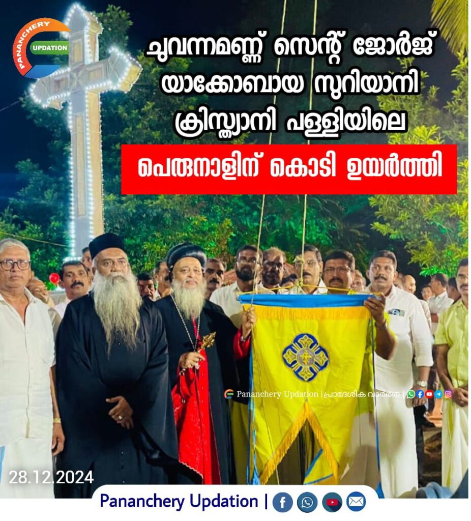 ചുവന്നമണ്ണ് സെന്റ് ജോർജ് യാക്കോബായ സുറിയാനി ക്രിസ്ത്യാനി പള്ളിയിലെ പെരുനാളിന് കൊടി ഉയർത്തി