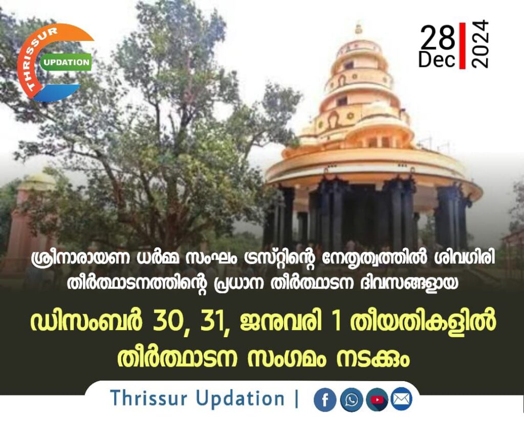 ശ്രീനാരായണ ധർമ്മ സംഘം ട്രസ്റ്റിന്റെ നേതൃത്വത്തിൽ ശിവഗിരി തീർത്ഥാടനത്തിന്റെ പ്രധാന തീർത്ഥാടന ദിവസങ്ങളായ ഡിസംബർ 30, 31, ജനുവരി 1 തീയതികളിൽ തീർത്ഥാടന സംഗമം നടക്കും