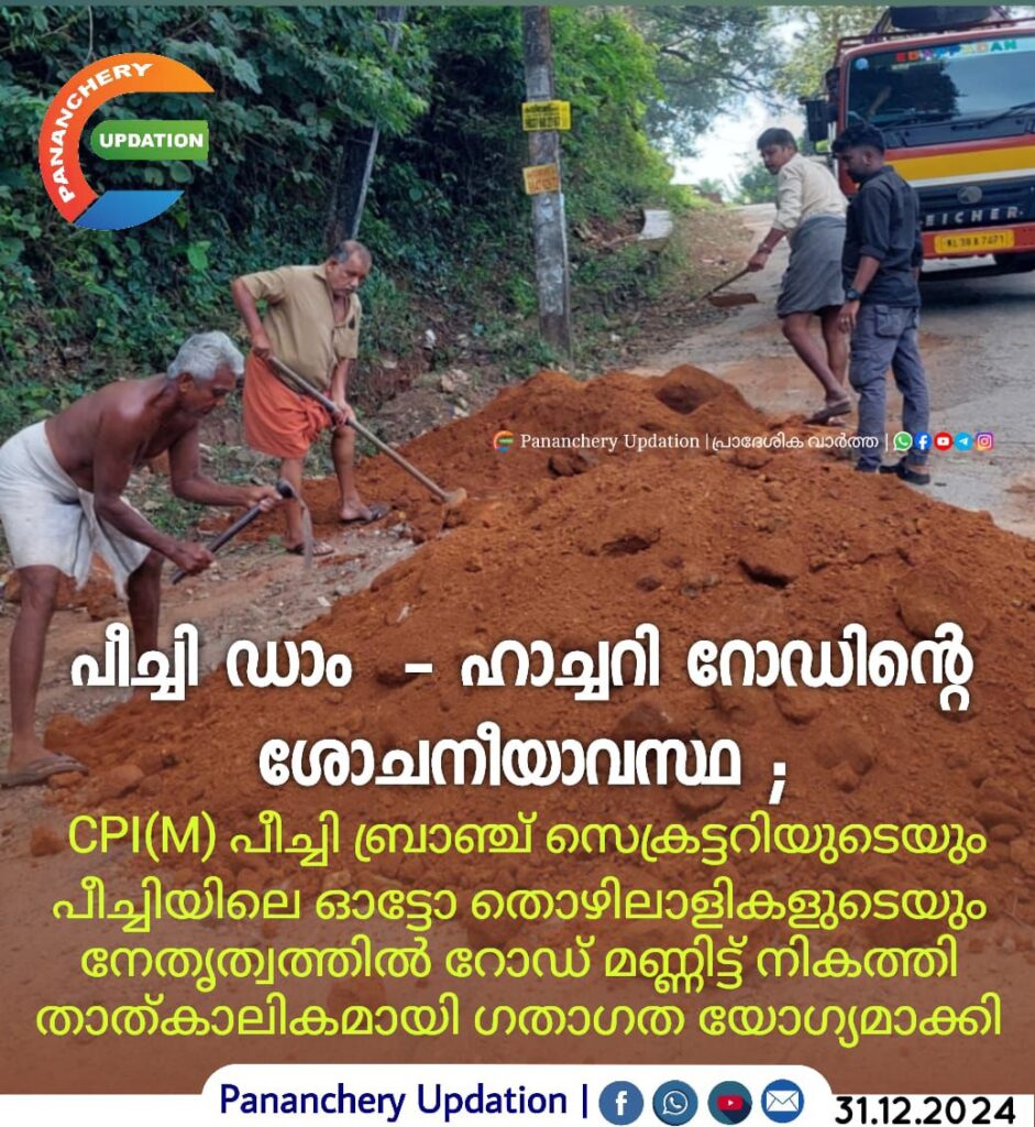 പീച്ചി_ഡാം ഹാച്ചറി റോഡ് പൊട്ടി പൊളിഞ്ഞ ദുർഗട പാതയായി കിടക്കാൻ തുടങ്ങിയിട്ട് മാസങ്ങളായി. ഡാമിന്റെ അടിവാരത്തേക്കുള്ള റോഡാണിത്. പട്ടിലുംകുഴി, മൈലാട്ടുംപാറ,കട്ടച്ചിറക്കുന്ന്, ചെളികുഴി എന്നീ പ്രദേശങ്ങളിലേക്കുള്ള പ്രധാന റോഡുകൂടിയാണ് ശോചനീയവസ്ഥയിൽ ആയത്. പീച്ചിയിലെ ഓട്ടോ തൊഴിലാളികളുടെയും മേൽ പറഞ്ഞ പ്രദേശ വാസികളുടെയും ഏറെ നാളത്തെ പരാതി ആയിരുന്നു ഈ റോഡ്. എന്നാൽ റോഡ് പൊളിഞ്ഞു പോയ ഭാഗങ്ങളിൽ മണ്ണിട്ട് നികത്തി താത്കാലിക പരിഹാരം കണ്ടിരിക്കുകയാണ്. 45 ലക്ഷം രൂപയുടെ ഭരണാനുമതി ലഭിച്ചിട്ടുണ്ടെന്നും ടെക്നിക്കൽ സാങ്ഷൻ അനുവദിച്ചിട്ടുണ്ടെന്നും, ടെൻഡർ നടപടികൾ പൂർത്തീകരിച്ചുകൊണ്ട് മാർച്ച് മാസത്തിനുള്ളിൽ നിലവിലുള്ള റോഡിന്റെ വീതി കൂട്ടി റോഡ് പുനർനിർമ്മാണം ഉണ്ടാകുമെന്നും അധികൃതർ അറിയിച്ചതായി സിപിഎം പീച്ചി ബ്രാഞ്ച് സെക്രട്ടറി രാഹുൽ അരമനയിൽ അറിയിച്ചു
