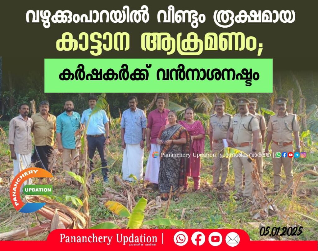 വഴക്കുംപാറയിൽ വീണ്ടും രൂക്ഷമായ കാട്ടാന ആക്രമണം; കർഷകർക്ക് വൻനാശനഷ്ടം