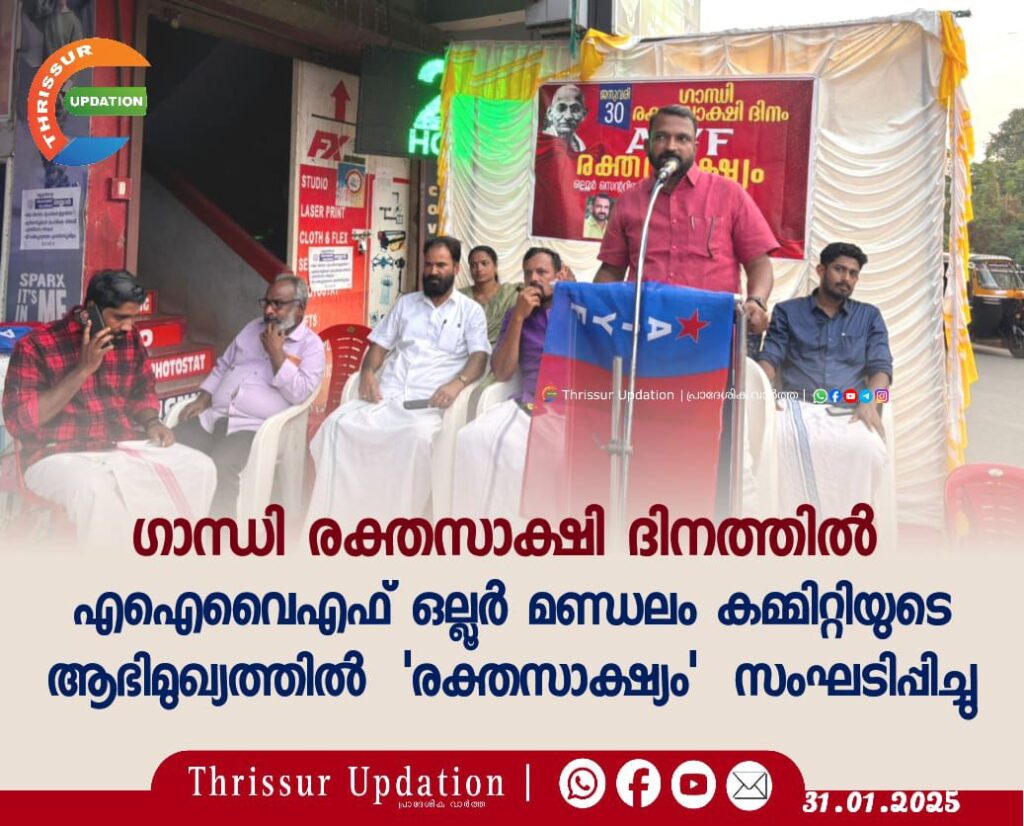 എഐവൈഎഫ് ഒല്ലൂർ മണ്ഡലം കമ്മിറ്റിയുടെ ആഭിമുഖ്യത്തിൽ ഗാന്ധി രക്തസാക്ഷി ദിനത്തിൽ ‘രക്തസാക്ഷ്യം’ സംഘടിപ്പിച്ചു