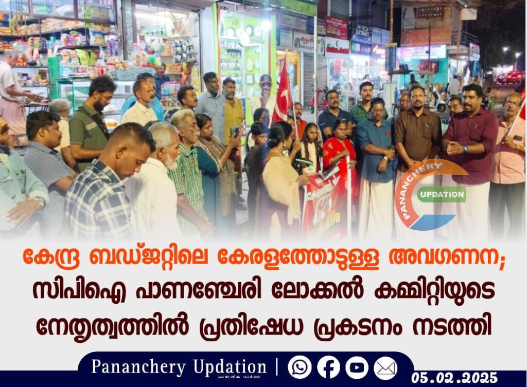 കേന്ദ്ര ബഡ്ജറ്റിലെ കേരളത്തോടുള്ള അവഗണന; സിപിഐ പാണഞ്ചേരി ലോക്കൽ കമ്മിറ്റിയുടെ നേതൃത്വത്തിൽ പ്രതിഷേധ പ്രകടനം നടത്തി