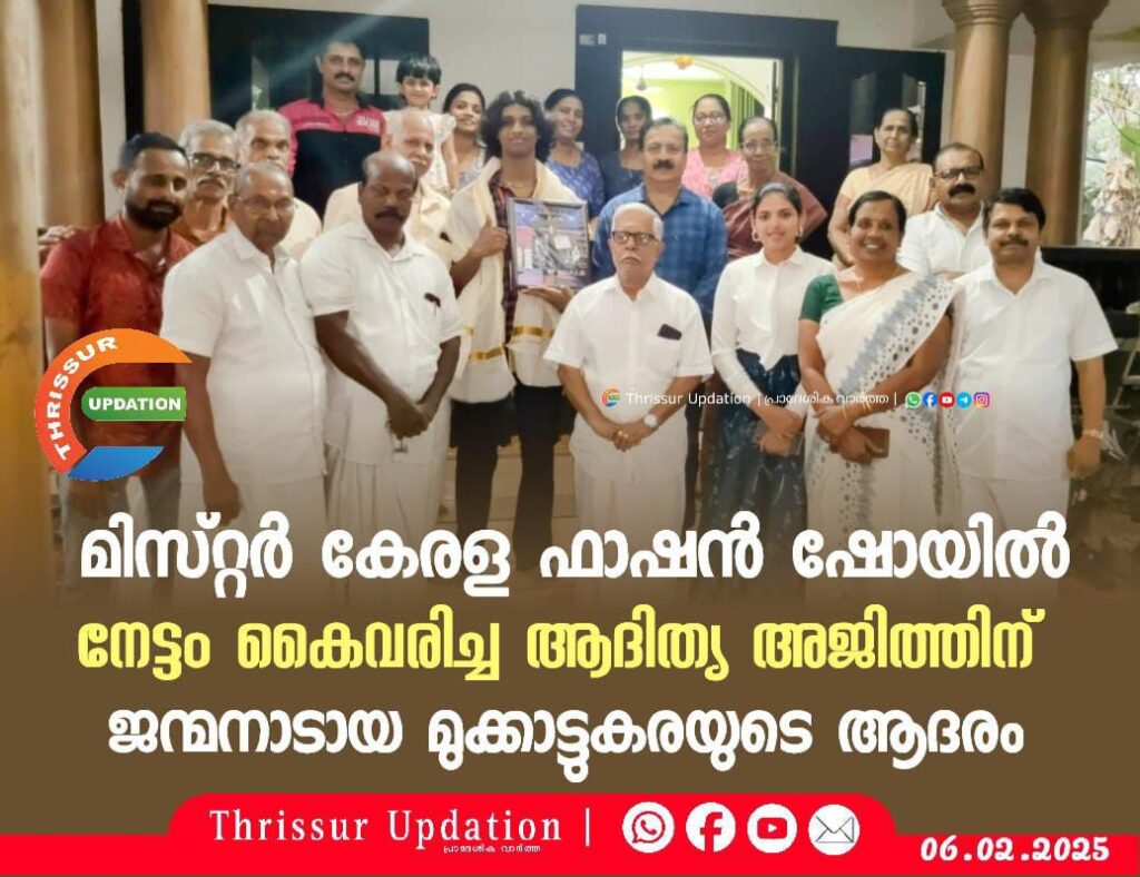 മിസ്റ്റർ കേരള ഫാഷൻ ഷോയിൽ നേട്ടം കൈവരിച്ച ആദിത്യ അജിത്തിന് ജന്മനാടായ മുക്കാട്ടുകരയുടെ ആദരം