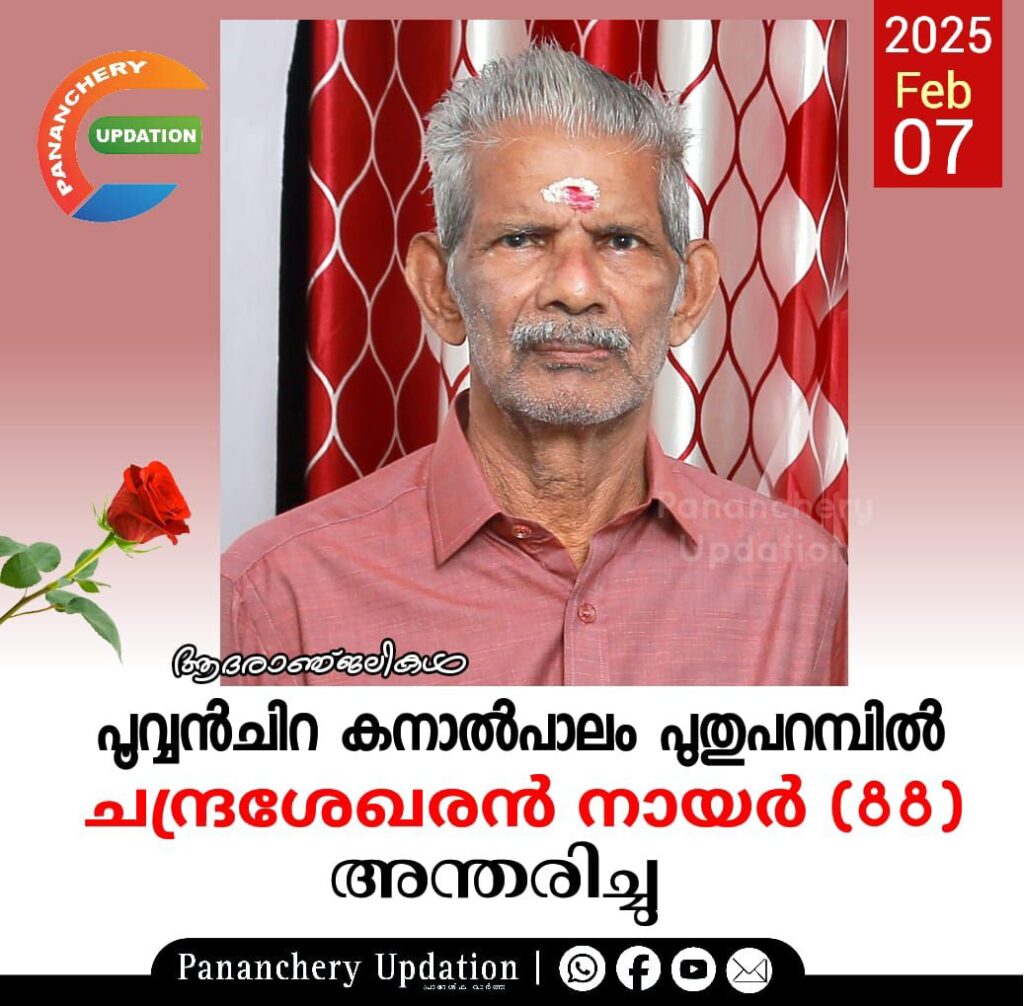 പൂവ്വൻചിറ കനാൽപാലം പുതുപറമ്പിൽ ചന്ദ്രശേഖരൻ നായർ (88) അന്തരിച്ചു.